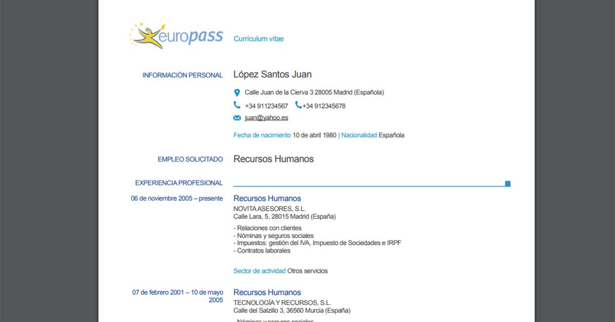Europass, el curriculum vitae europeo con tu formación, idiomas y empleos que se convalida en toda Europa