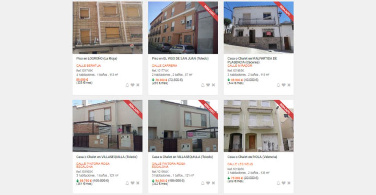 Las viviendas están sobre todo en municipios de las provincias de Granada, Toledo, Alicante, Valencia, Zaragoza, Almería, Lleida o La Rioja y tienen una media de unos 100 metros cuadrados y cuentan con 3 dormitorios.