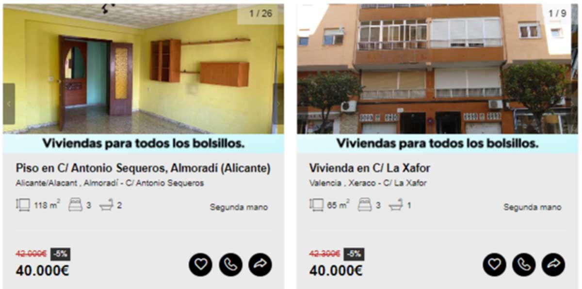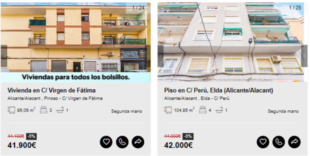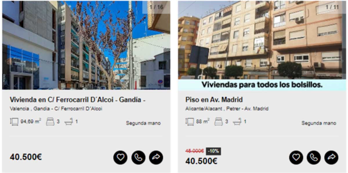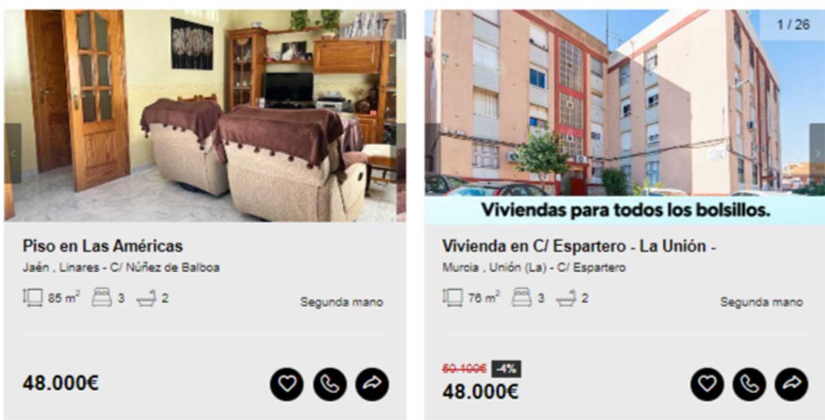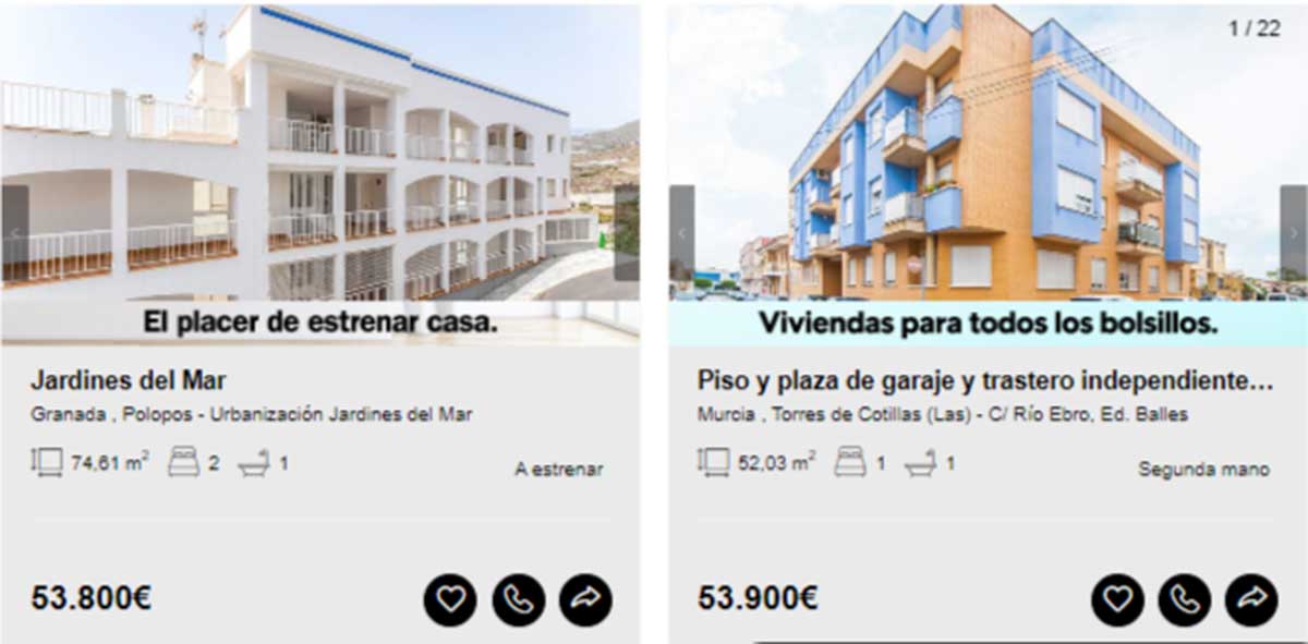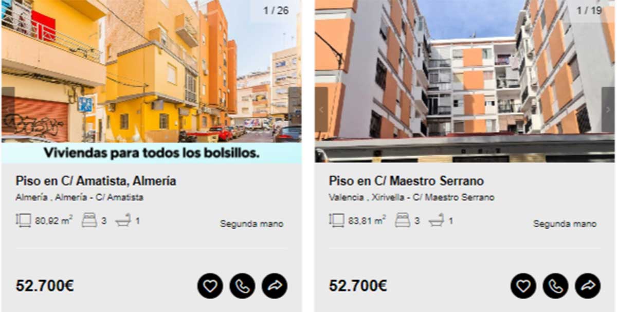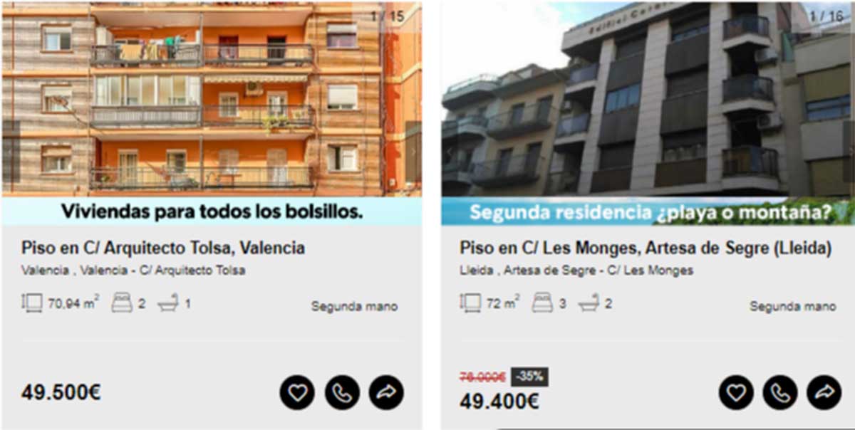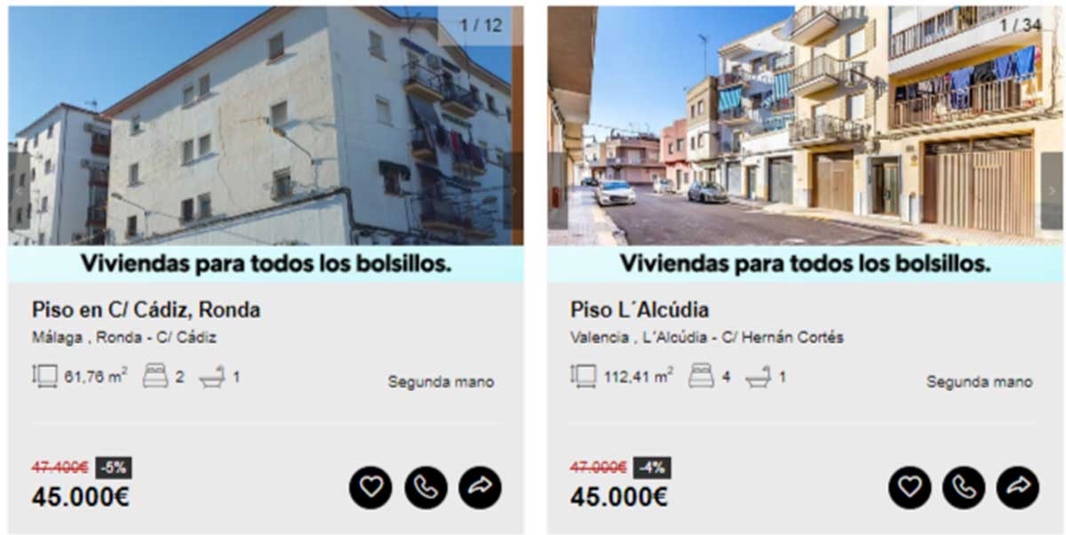 Se trata de inmuebles tanto de segunda mano, como a estrenar y distribuidos por diferentes zonas de España. Aunque la oferta se concentra en algunas provincias del litoral mediterráneo, como Valencia, Murcia y Alicante y en zonas de interior, como Toledo y Ciudad Real.