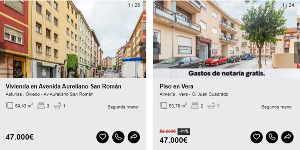 Por entre 40.000 y 50.000 euros, destacan las siguientes ofertas de pisos en venta en la inmobiliaria de Solvia: