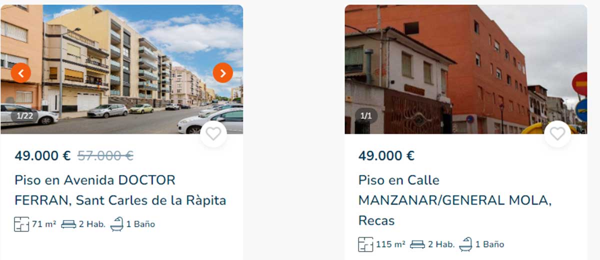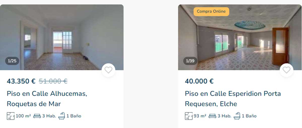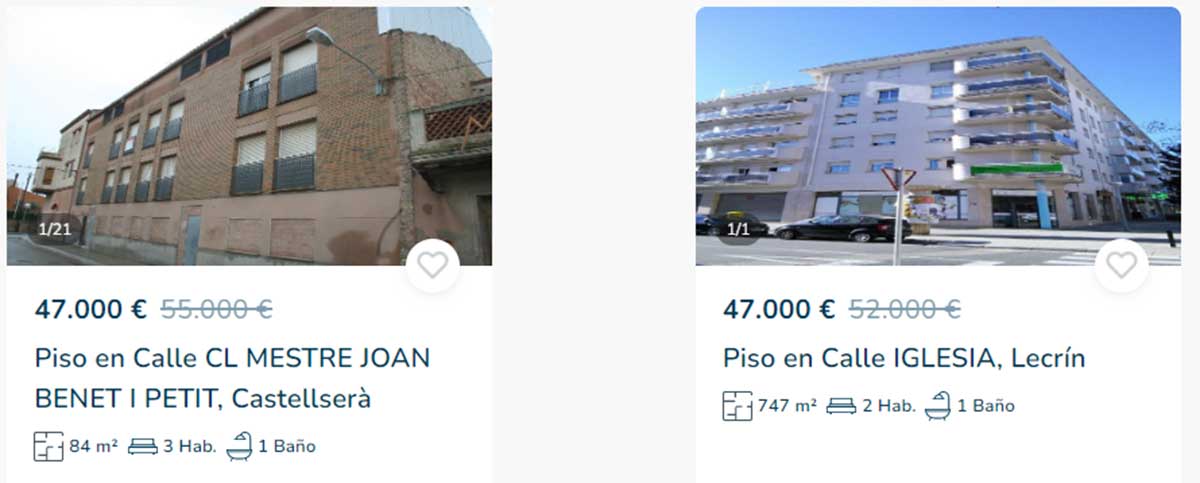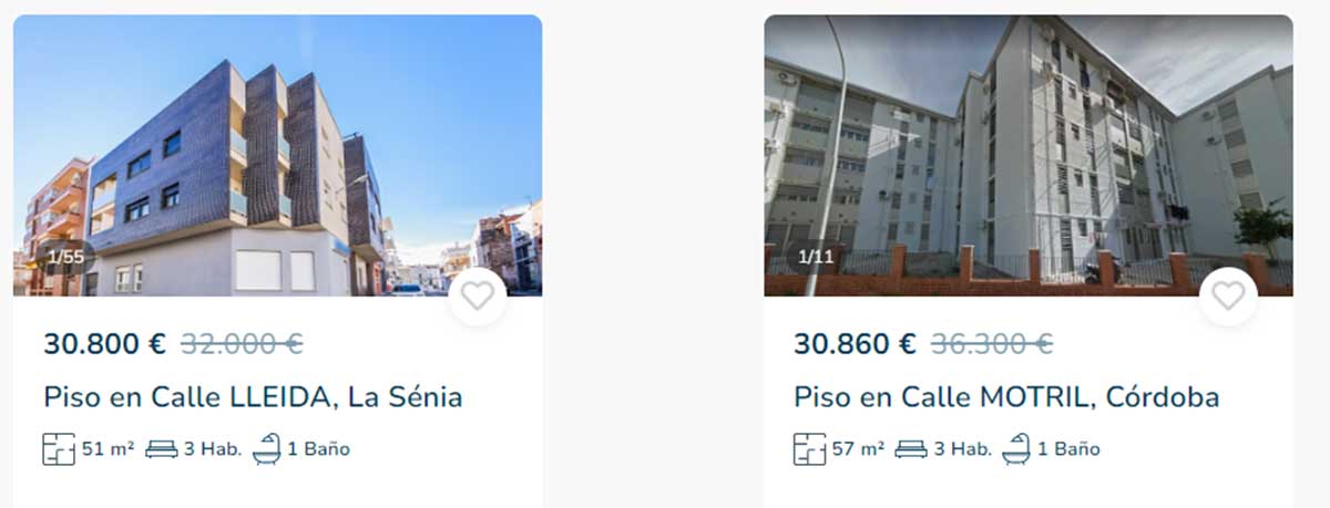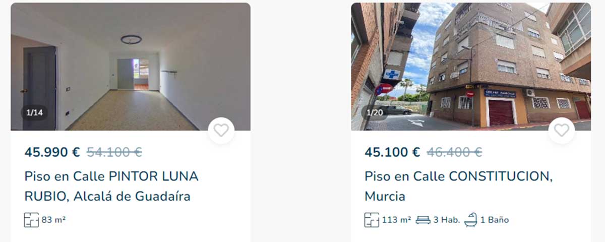 Del total del catálogo, algunos de los pisos en venta disponibles por menos de 50.000 euros son los que puedes ver a continuación: