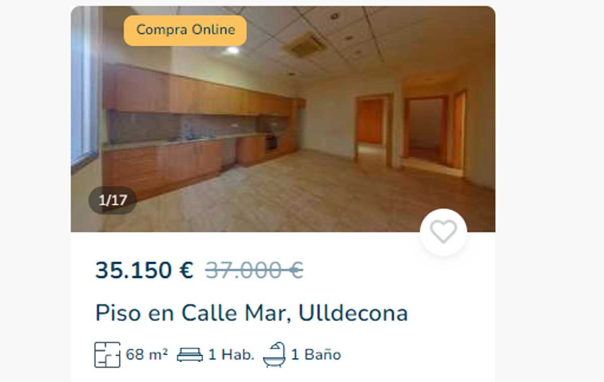 - Vivienda en venta por 35.150 euros en la localidad de Ulldecona, Tarragona. Es un piso de 68 metros cuadrados distribuidos en una habitación y un baño.