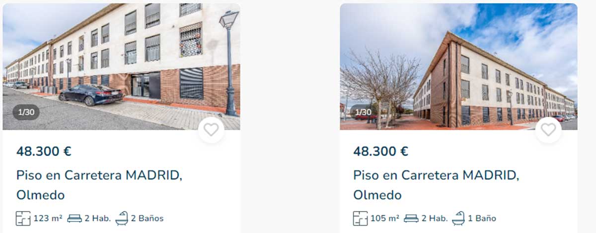 - Vivienda en venta en la localidad de Olmedo, Valladolid, por 48.300 euros. Es un piso de 105 metros cuadrados distribuidos en dos habitaciones y un baño.