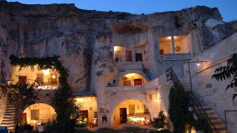 Cada una de las 21 habitaciones-cueva tiene una terraza privada en la roca. Las terrazas ofrecen unas vistas impresionantes del paisaje de Capadocia hacia el monte Erciyes, donde montar a caballo y hacer senderismo es muy popular. Para los más aventureros hay globos de aire caliente que despegan y aterrizan justo al lado del hotel. Un viajero de TripAdvisor comentó: “¡Nuestra habitación era magnífica, una cueva con un baño turco incorporado del tamaño de una habitación!”.