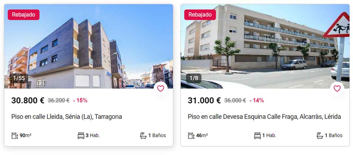 - Piso en venta por 30.800 euros en la localidad de La Sénia, Tarragona. Tiene 90 metros cuadrados que se distribuyen en tres habitaciones y un baño.