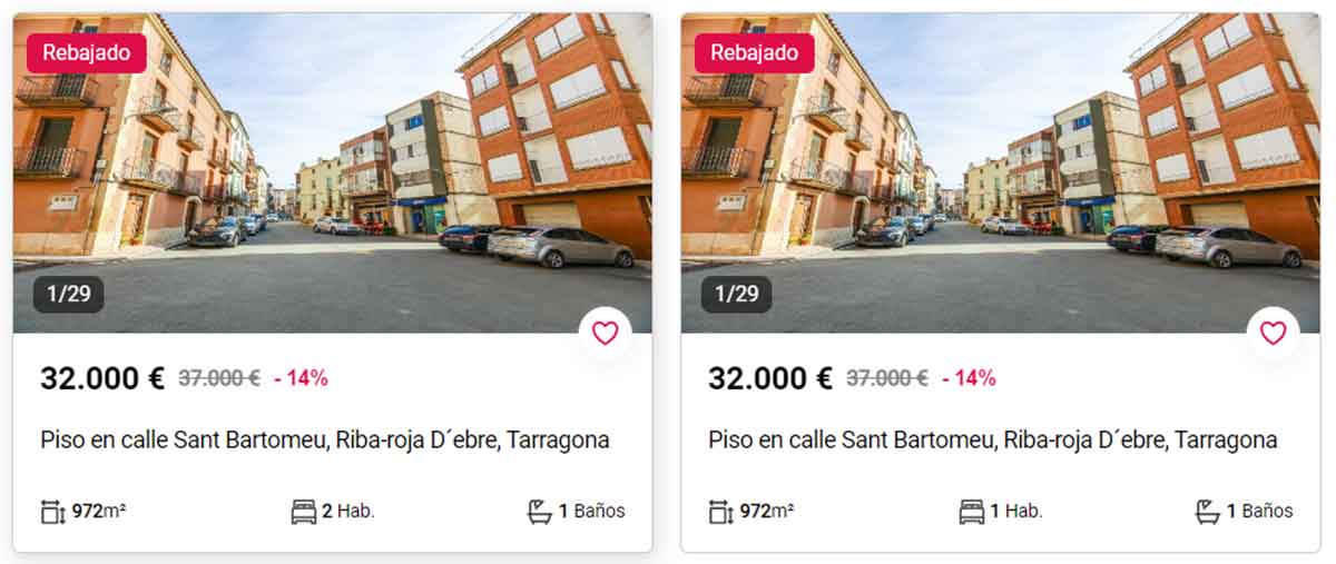 - Piso a la venta en Móra D’Ebre, Tarragona, por 26.400 euros. Es una vivienda de 69 metros cuadrados, de obra nueva, con una habitación y un baño.