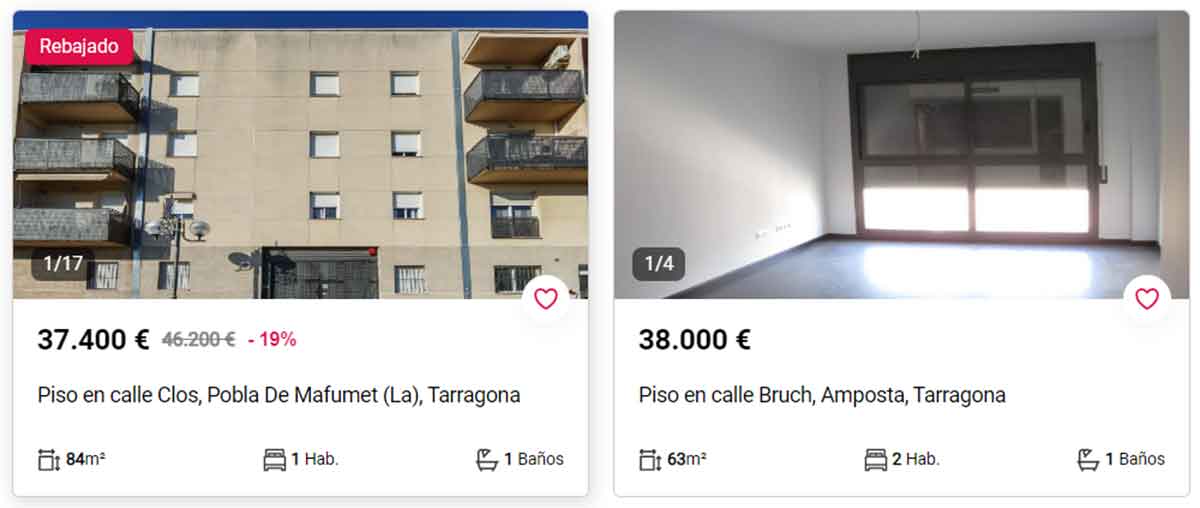 - Piso en venta por 37.400 euros en La Pobla de Mafumet, Tarragona. Es una vivienda de 84 metros cuadrados distribuidos en una habitación y un baño.
