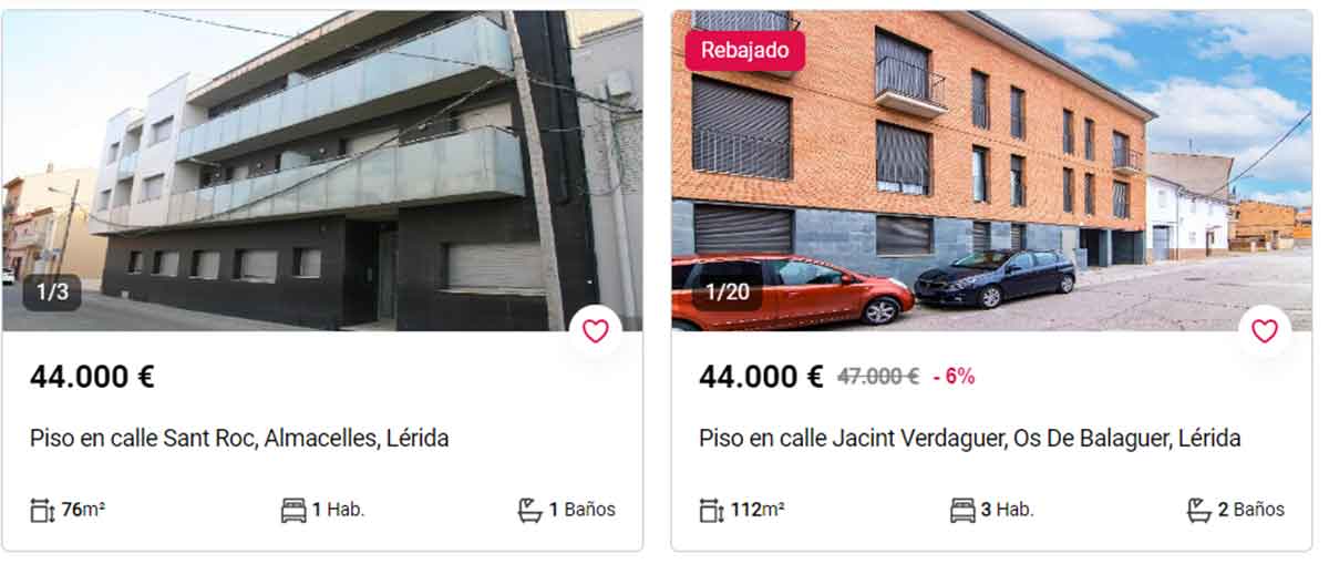 - Piso en venta por 44.000 euros en Almacelles, Lleida. Es una vivienda de 76 metros cuadrados con una habitación y un baño.