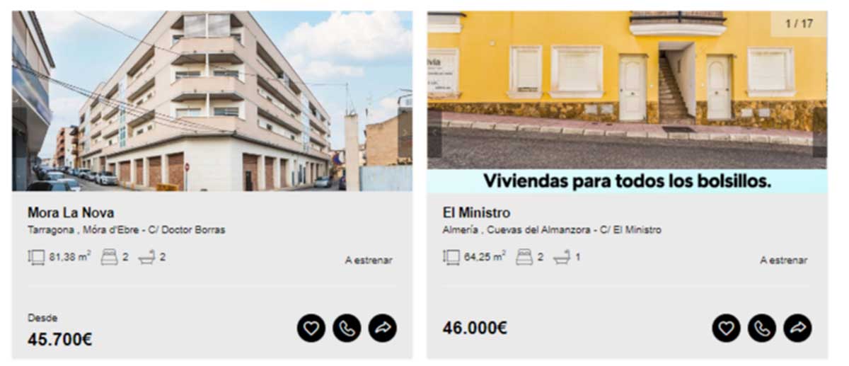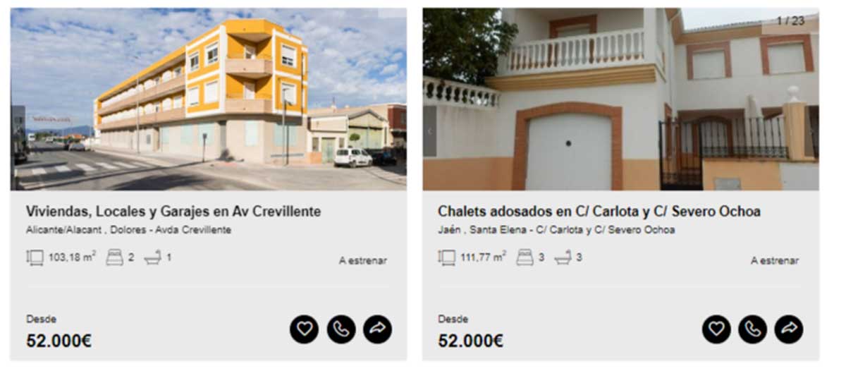 Todas las viviendas que se incluyen en esta guía proceden de la sección específica de casas a estrenar de Solvia y se distribuyen por diferentes puntos de España. Las más baratas pueden comprarse desde 20.000 euros aproximadamente y todas son viviendas a estrenar, que todavía no han sido utilizadas por otros propietarios o inquilinos.