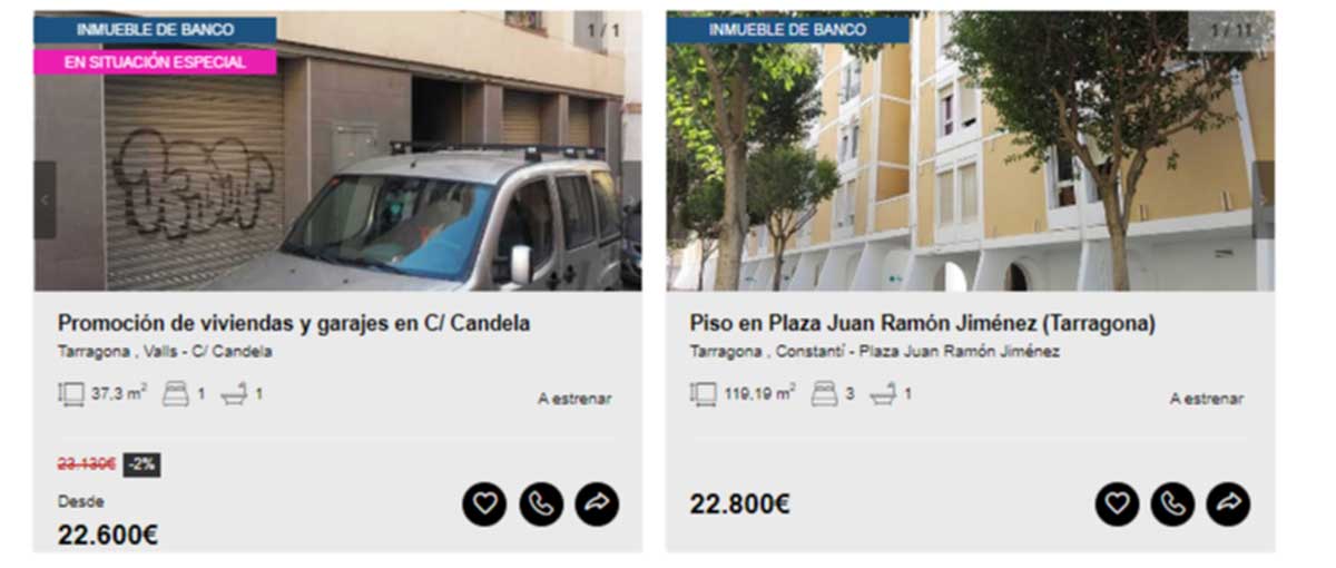 - Piso en venta por 22.800 euros en Tarragona. Es una promoción de viviendas que tiene 119 metros cuadrados con tres habitaciones y un baño.