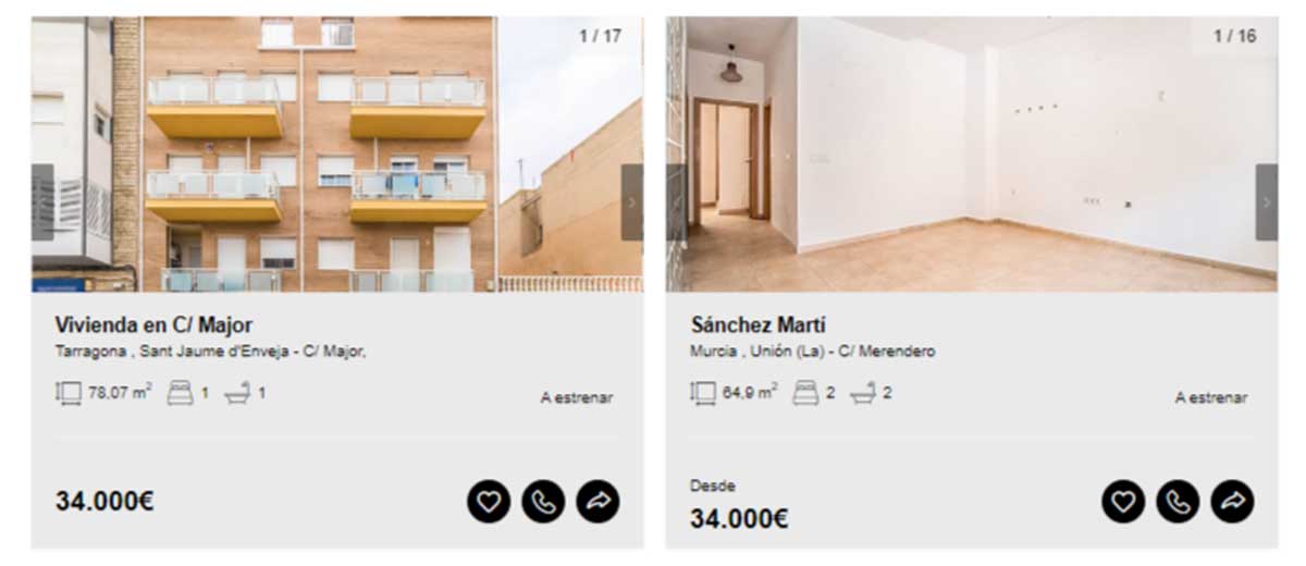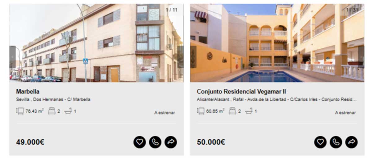 Del total del catálogo de pisos a casas a estrenar disponibles en el servicer inmobiliario Solvia, los más baratos pueden comprarse desde 20.000 euros.