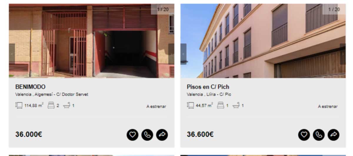 - Piso en venta en Valencia por 68.000 euros. Es una promoción de viviendas de 82 metros cuadrados con tres habitaciones y dos baños.