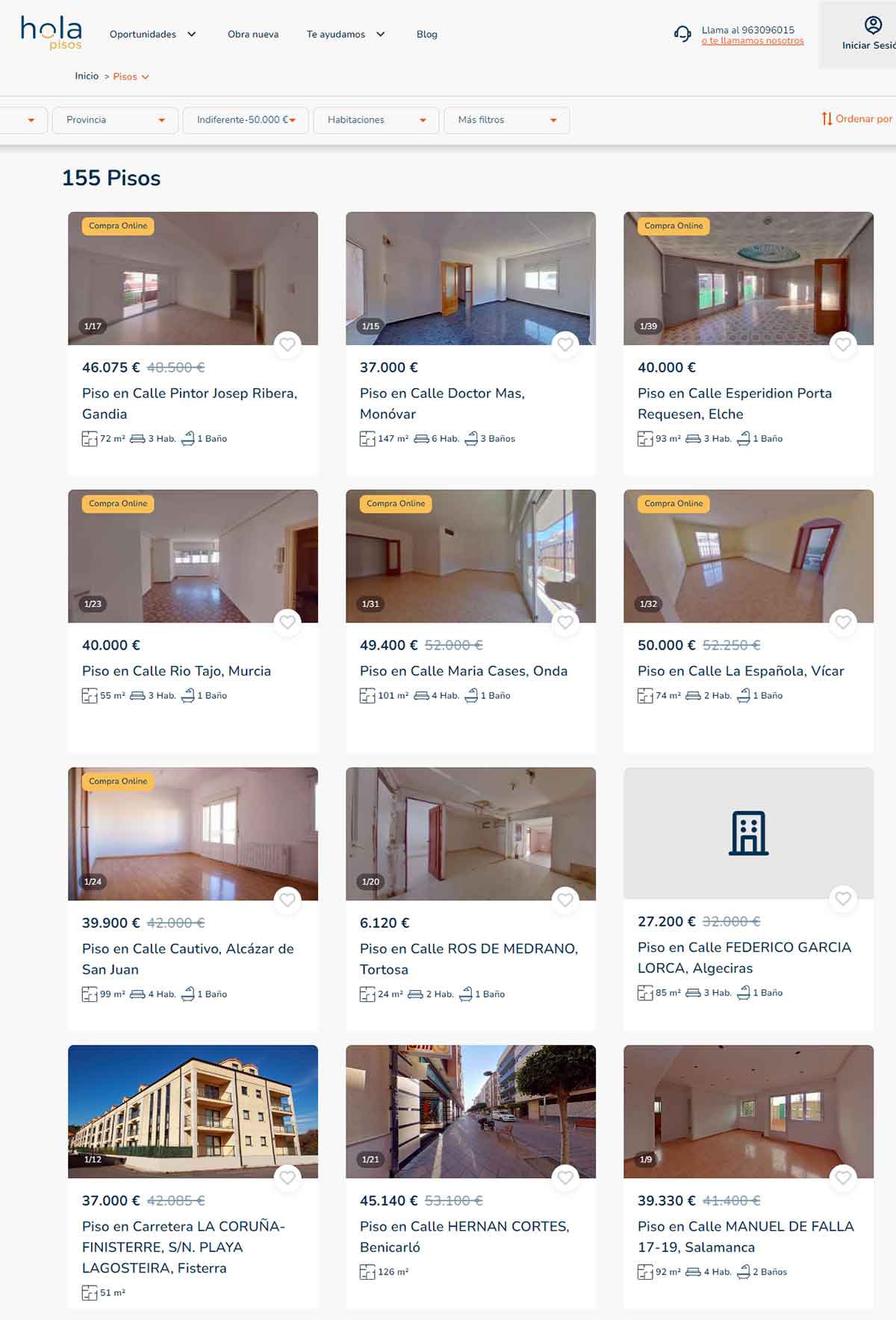 La oferta de viviendas y pisos con terraza en Holapisos comienza con inmuebles que se venden desde 20.000 euros. En esta otra información puedes consultar pisos con terraza por menos de 60.000 euros.