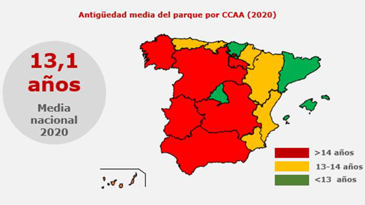 La concentración de este tipo de vehículos se produce en determinadas zonas de España. En concreto, los vehículos más antiguos se encuentran en comunidades como Extremadura, Castilla-La Mancha y Castilla y León. Mientras que en el lado opuesto, los vehículos más nuevos se encuentran Madrid, Cataluña y Baleares.
