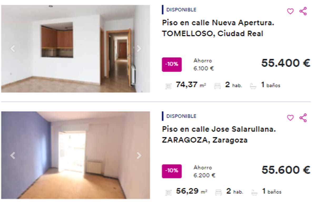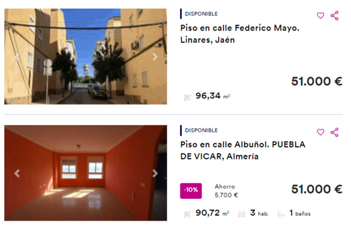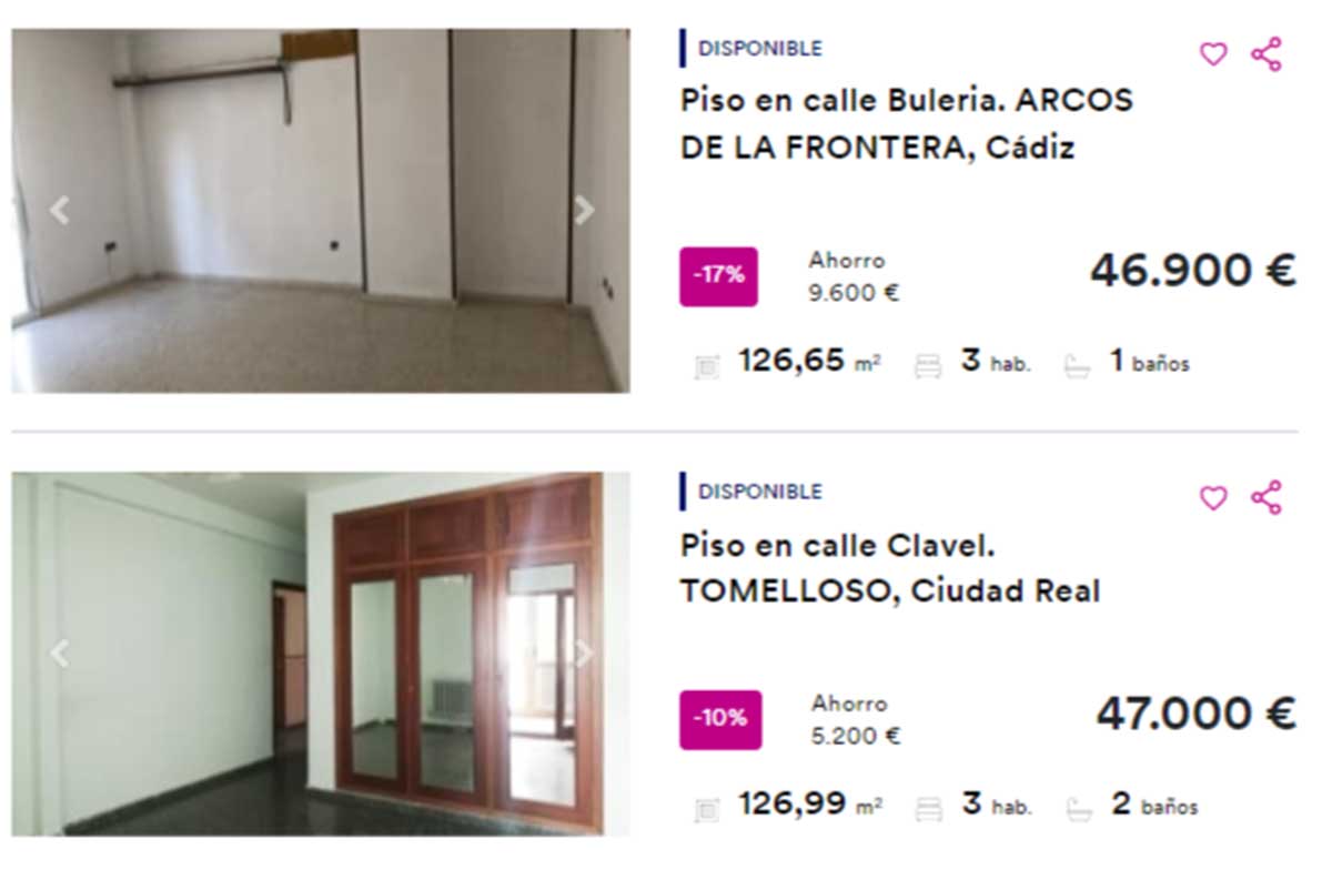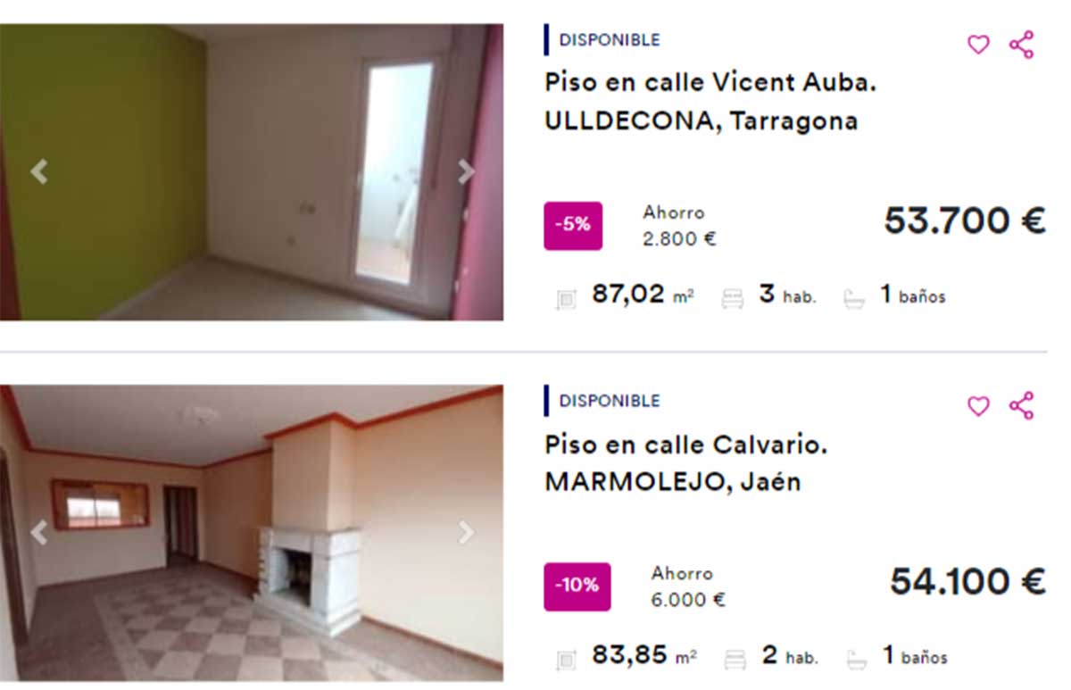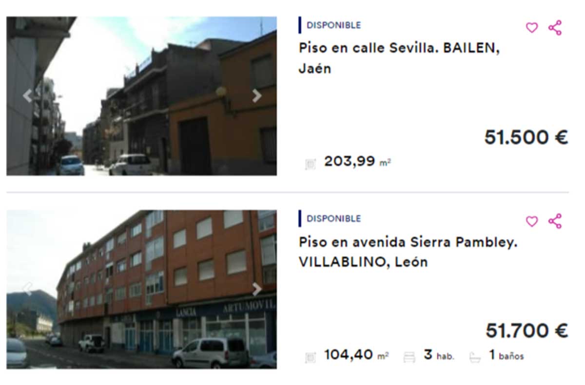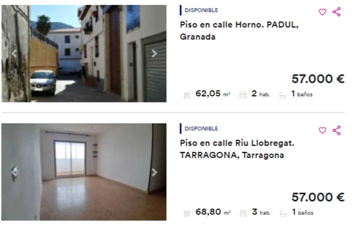 En una franja de precio algo superior, entre 50.000 y 60.000 euros, destacan las siguientes ofertas pisos del banco BBVA: