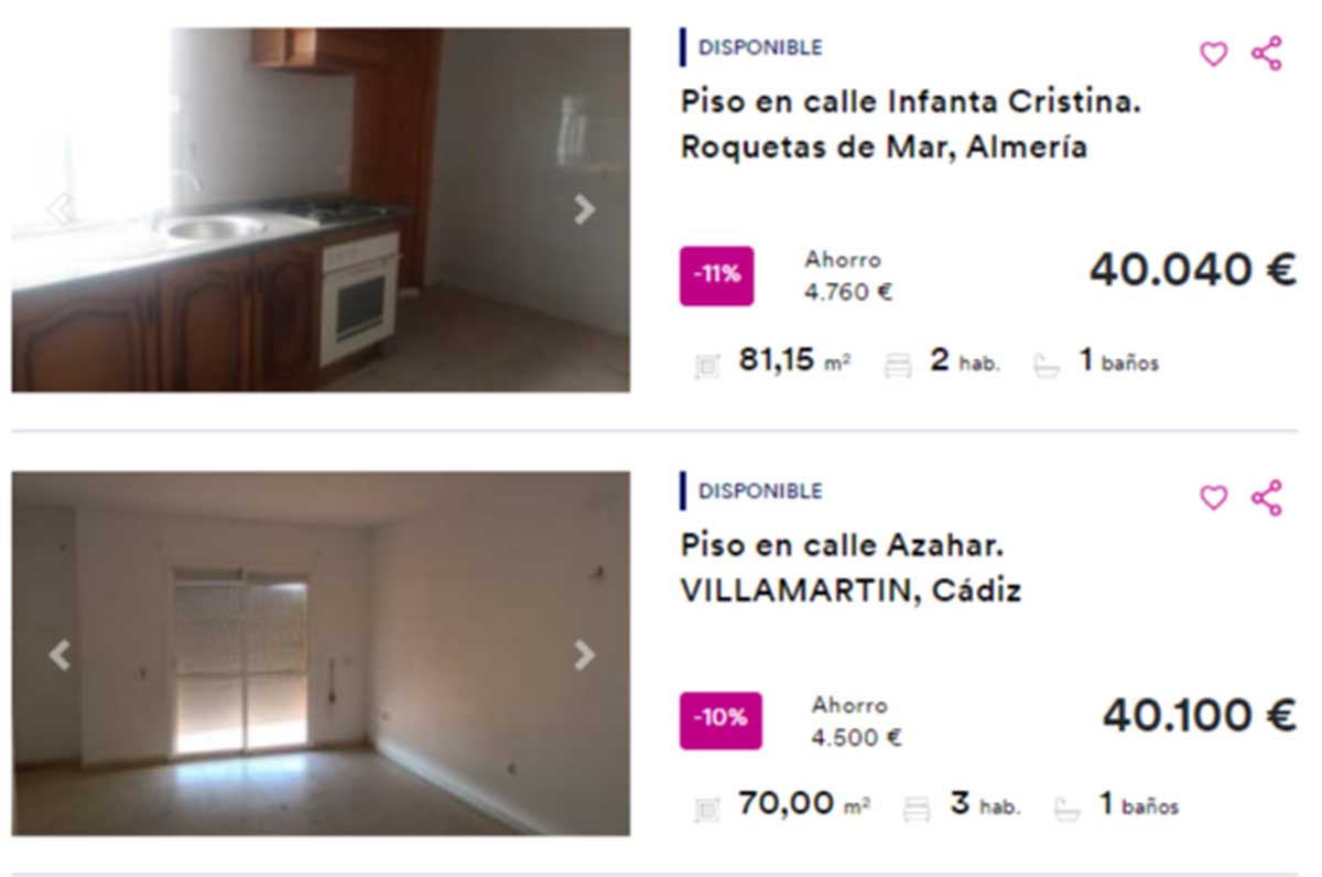 De la selección de viviendas en venta de BBVA que se incluye en esta selección, los pisos más baratos se venden desde 40.000 euros. Algunas de las ofertas más destacadas son las siguientes: