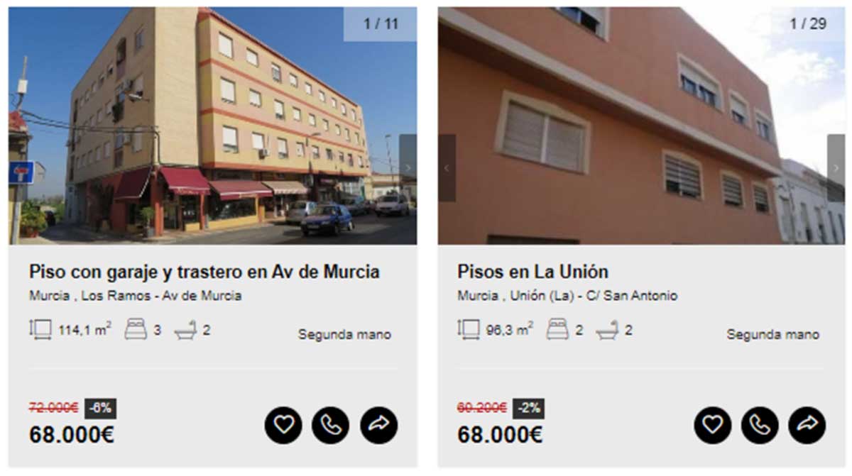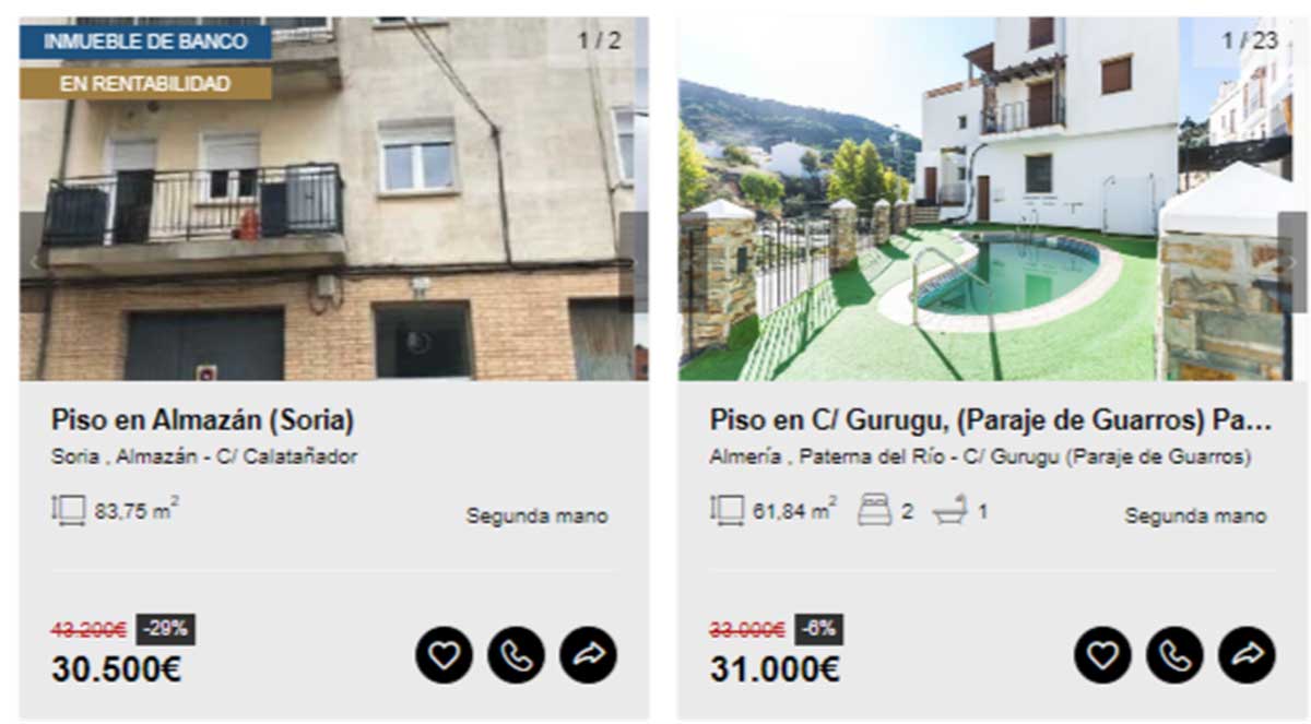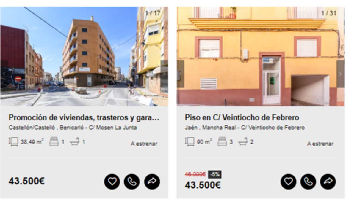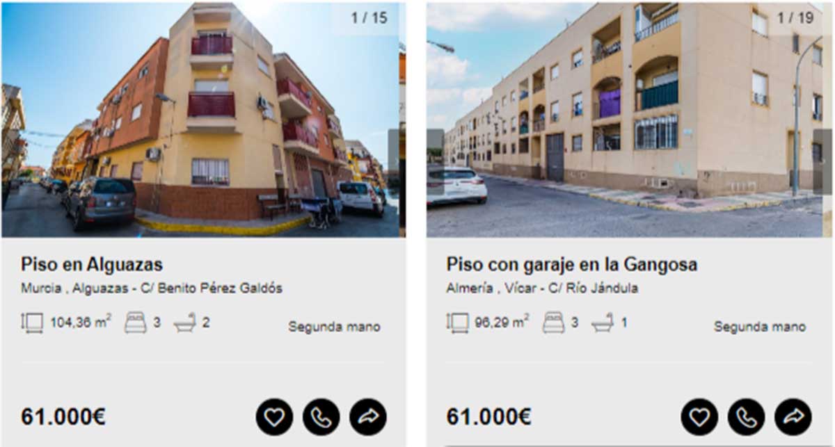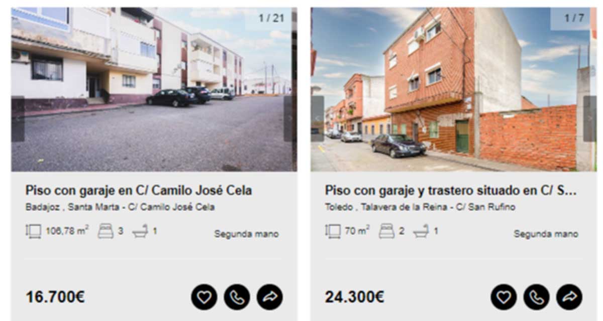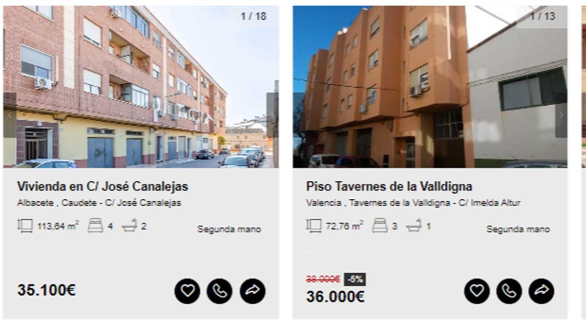 Los pisos con garaje más baratos a la venta en el portal de Solvia pueden comprarse desde 20.000 euros aproximadamente. Algunas de estas ofertas son las que puedes ver a continuación: