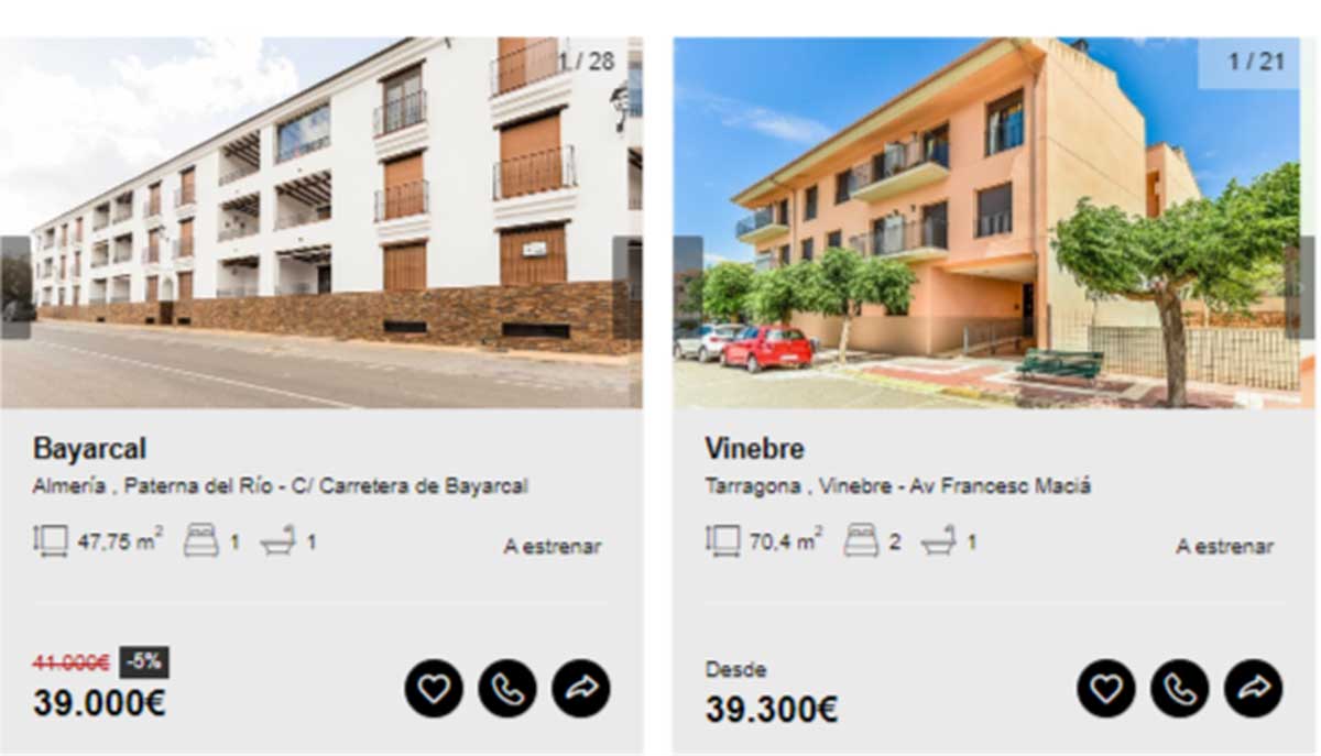 Los inmuebles se encuentran distribuidos por diferentes zonas de España, desde provincias de interior, hasta en zonas de costa, norte y sur de la península.