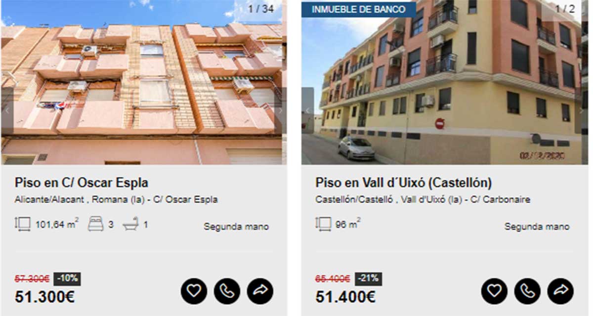 - Vivienda en venta con garaje en la localidad de Tavernes de la Valldigna, Valencia, por 36.000 euros. Es un piso de 72 metros cuadrados distribuidos en tres habitaciones y un baño.