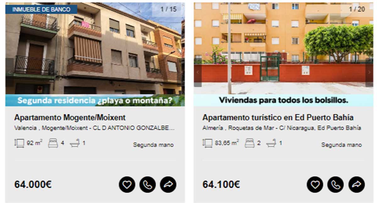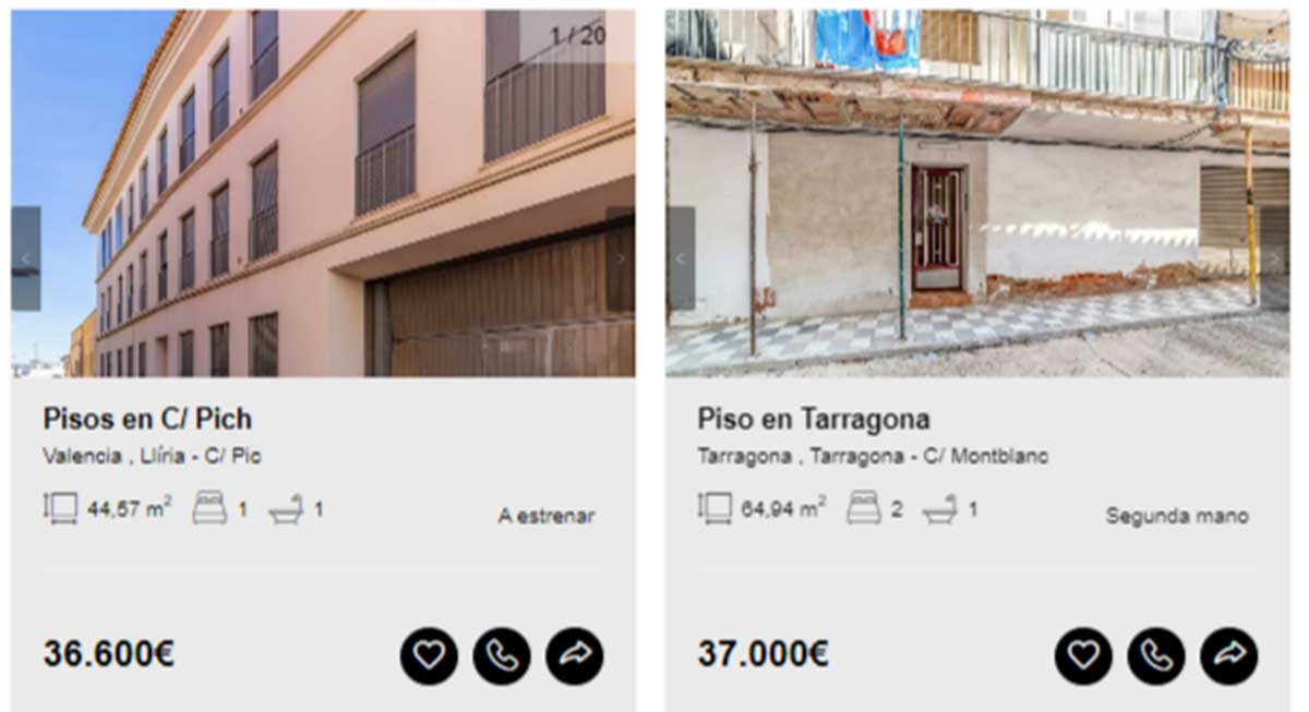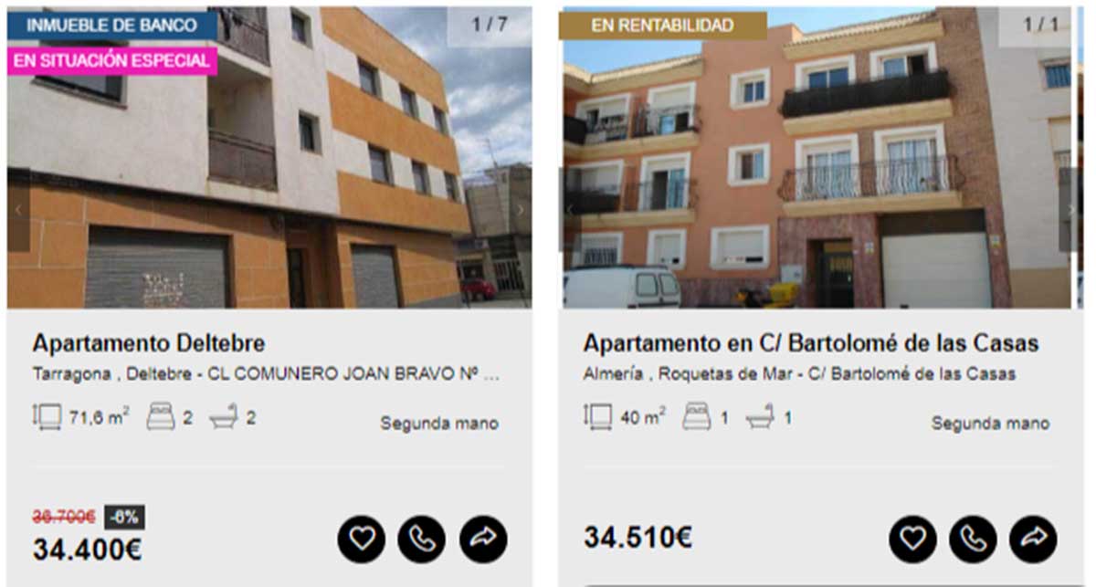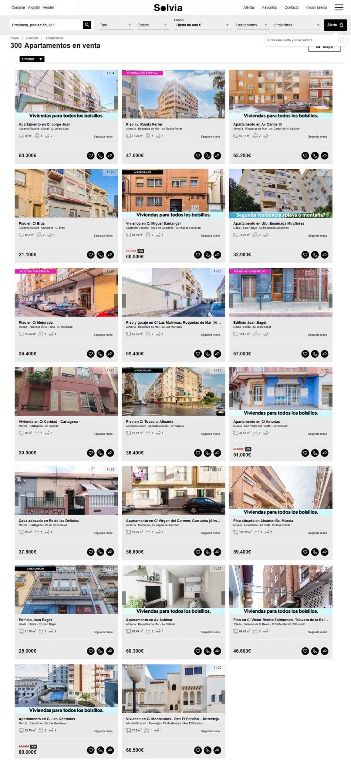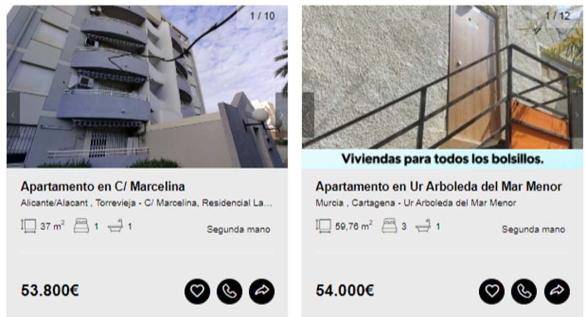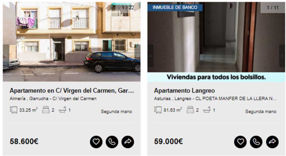 Aunque en el portal de Solvia hay viviendas disponibles desde los 2.000 euros, en esta guía solamente se incluyen aquellas que pueden comprarse libre de cargas y sin que tenga asociados varios propietarios en proindiviso o se encuentren en estado declarado de ruina. Motivo por el que los ejemplos comienzan desde los 20.000 euros.
