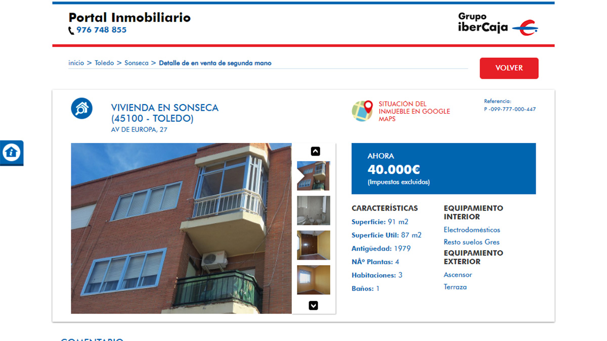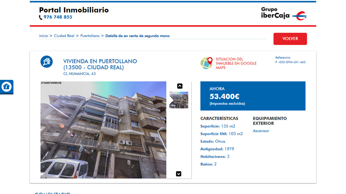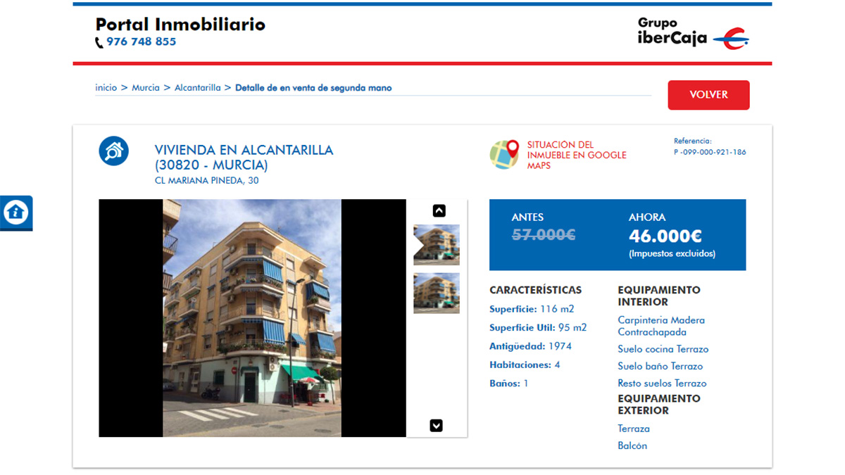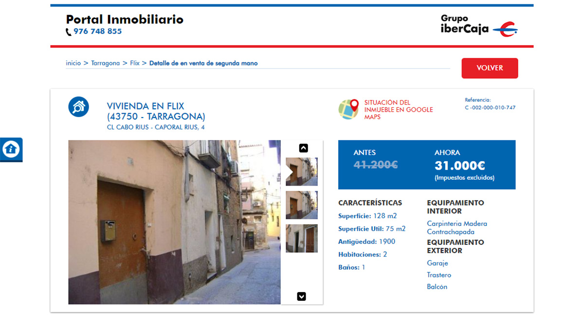 El piso en venta más barato del portal inmobiliario de Ibercaja está a la venta por 8.200 euros. Se trata de una vivienda de 3 dormitorios y 78 metros cuadrados ubicada en La Rioja. Aunque la oferta no tiene fotografías de las estancias de la vivienda para que los usuarios puedan verla.