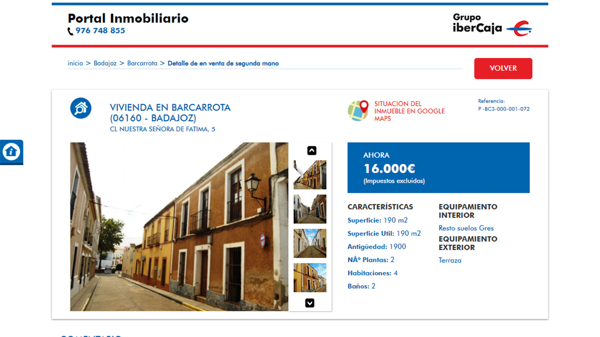 El portal cuenta con otras dos ofertas más en este rango de precio, pero no tiene imágenes para mostrar la oferta concreta. Se trata de una casa de 28.000 euros en la localidad de Fraga, Huesca y, otra por 28.500 euros en Badajoz.