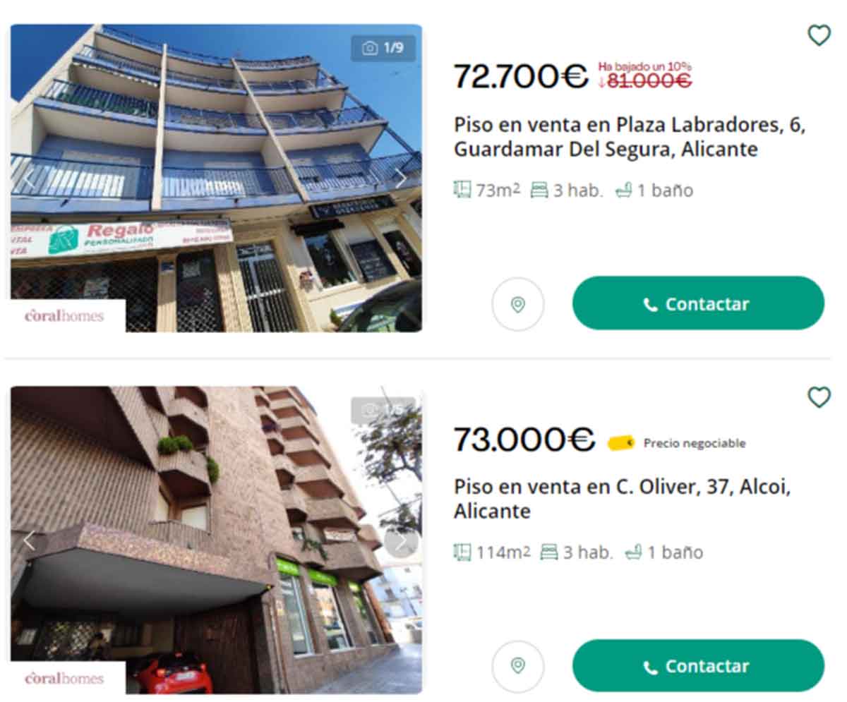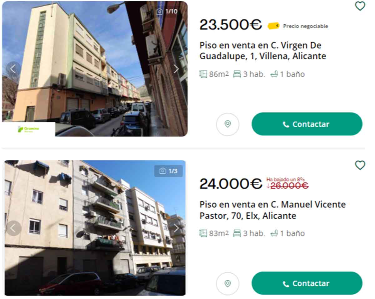 - Piso en venta en Alicante por 24.000 euros. Es una vivienda de 83 metros cuadrados con tres habitaciones y un baño.