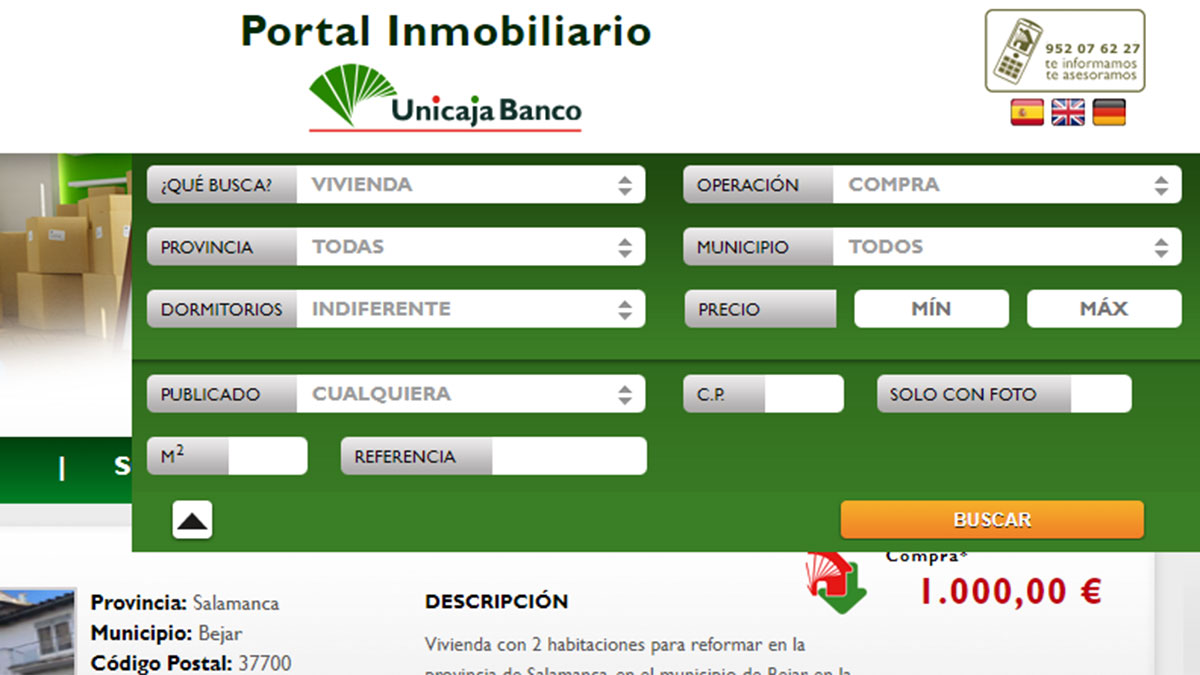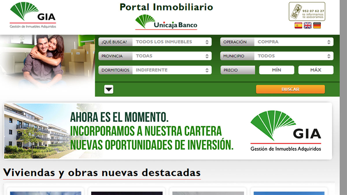 Para acceder al catálogo completo de todas las viviendas de banco de la entidad Unicaja hay que hacerlo desde la página principal de la web de la inmobiliaria.