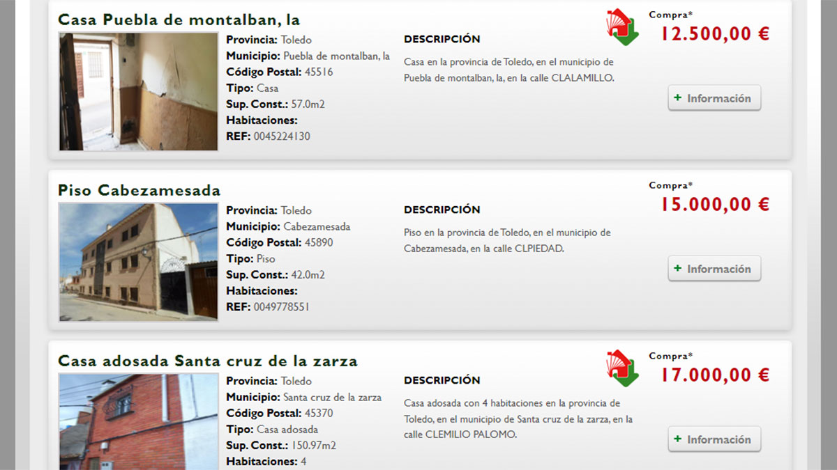 Otras ofertas de la provincia de Toledo por un precio algo mayor. Desde 12.500 euros es posible encontrar un gran catálogo de pisos tanto para reformar, como en buenas condiciones para entrar a vivir.