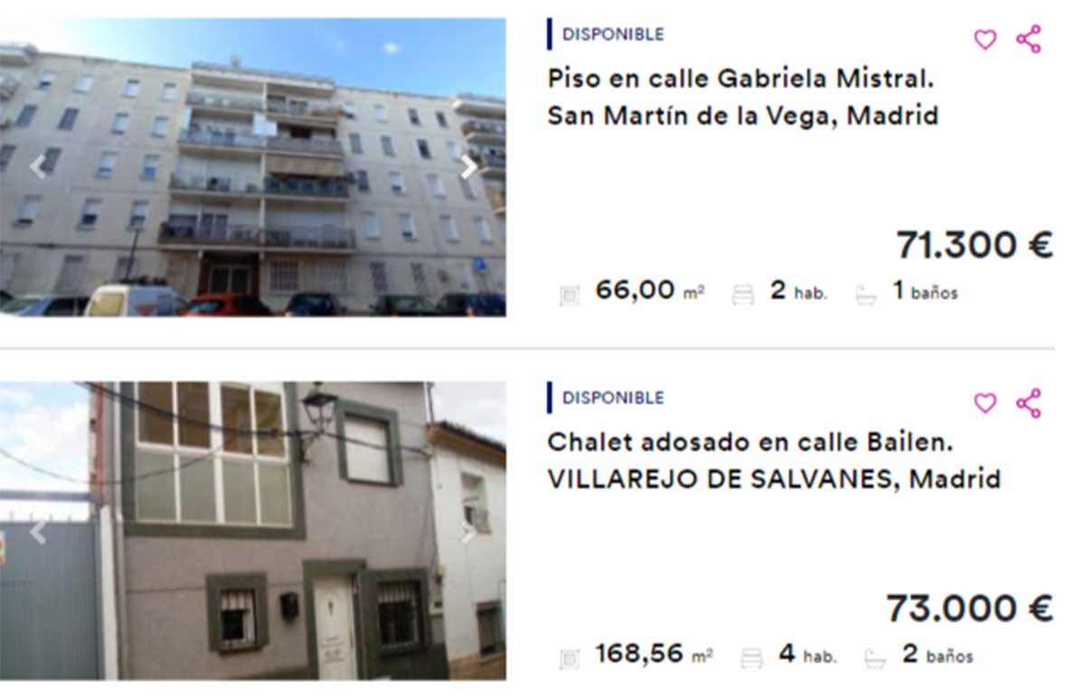 En un precio que supera los 70.000 euros, destacan las siguientes ofertas de viviendas de banco en Madrid:
