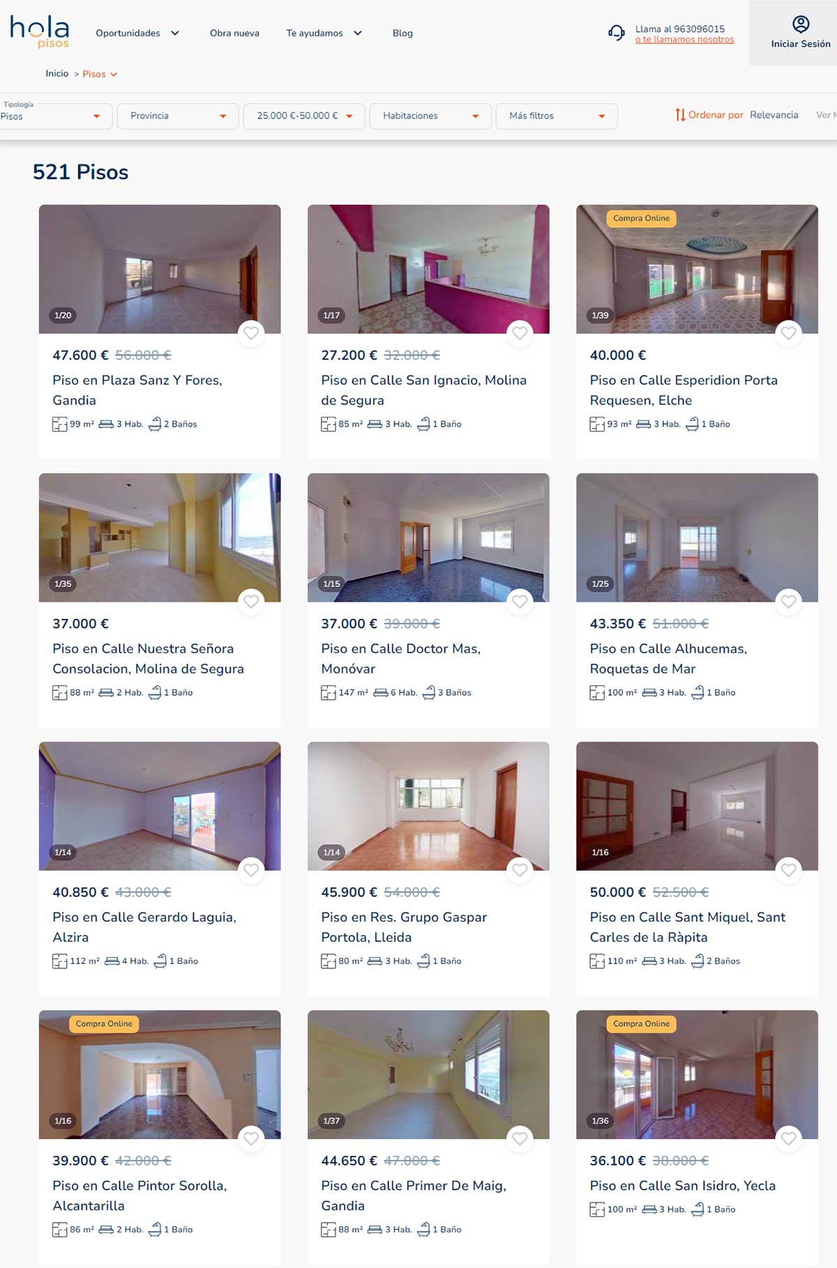 Más de 500 pisos procedentes de banco a la venta desde 25.000 euros y con más de 80 metros cuadrados de superficie. Este es el catálogo disponible en el portal inmobiliario Holapisos.