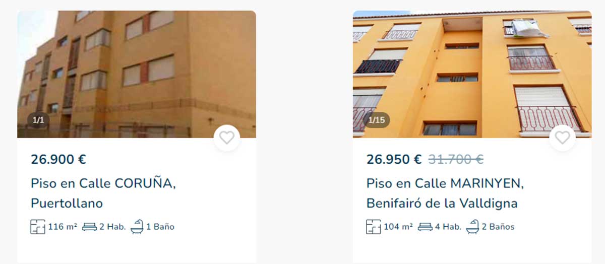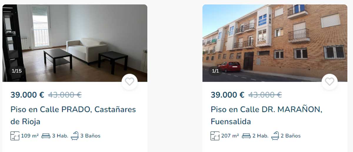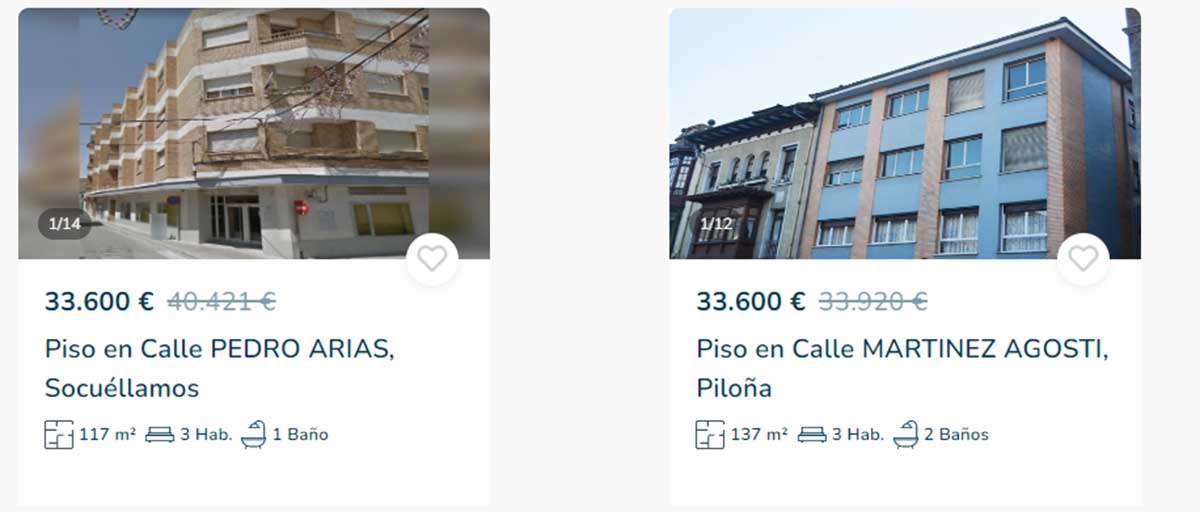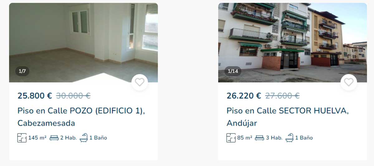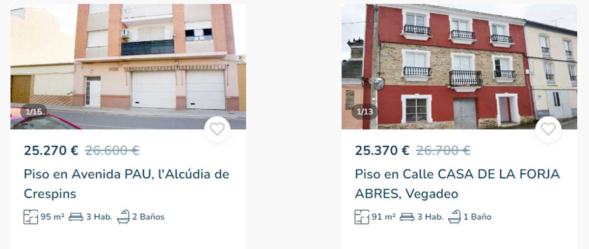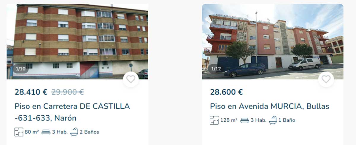 Las viviendas a la venta más baratas del catálogo, que tienen más de 80 metros cuadrados, pueden comprarse por un precio de entre 25.000 y 35.000 euros. A continuación puedes ver una selección de las ofertas más destacadas: