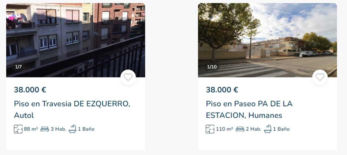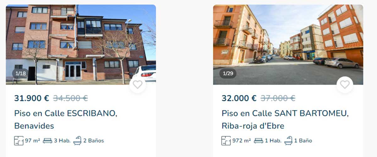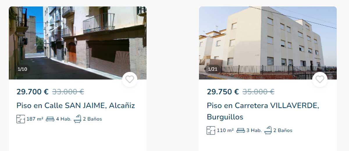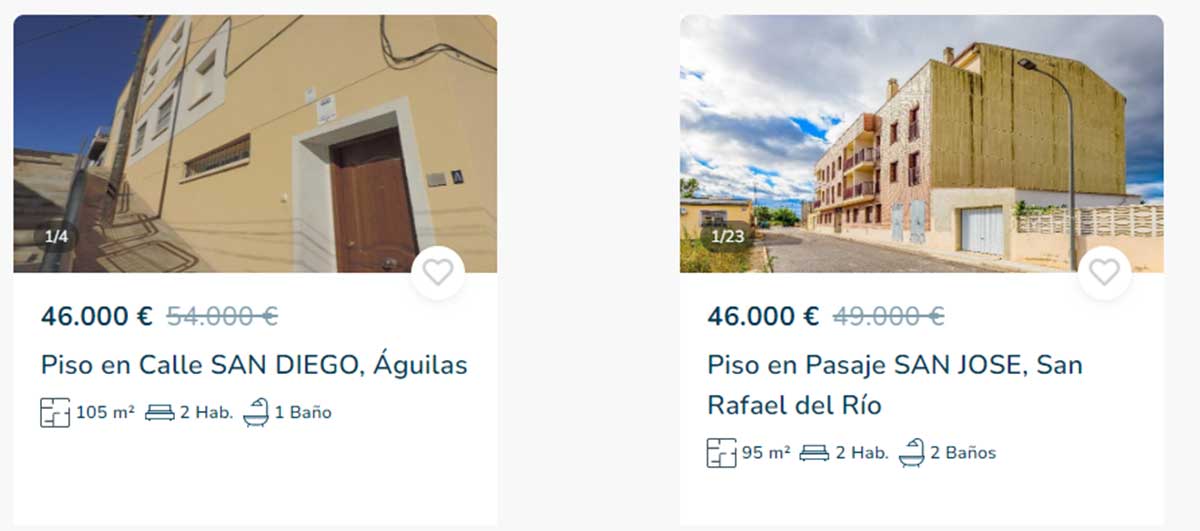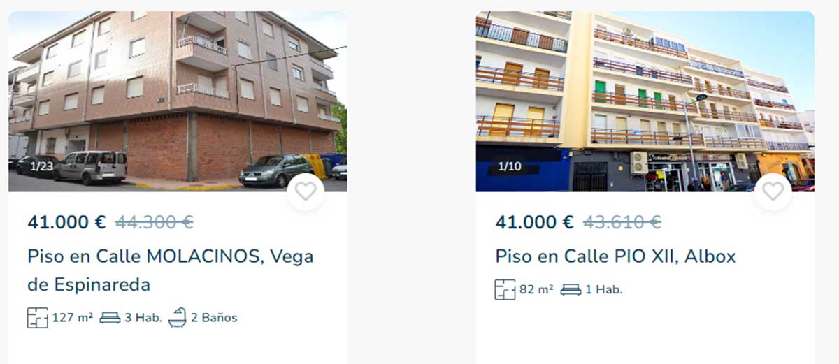 Las viviendas a la venta más baratas del catálogo, que tienen más de 80 metros cuadrados, pueden comprarse por un precio de entre 25.000 y 35.000 euros. A continuación puedes ver una selección de las ofertas más destacadas: