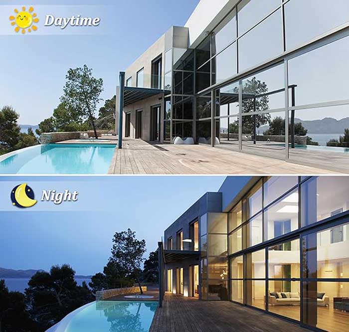 - Desde el exterior, solo se transmite un 5 % de luz visible para garantizar la privacidad
