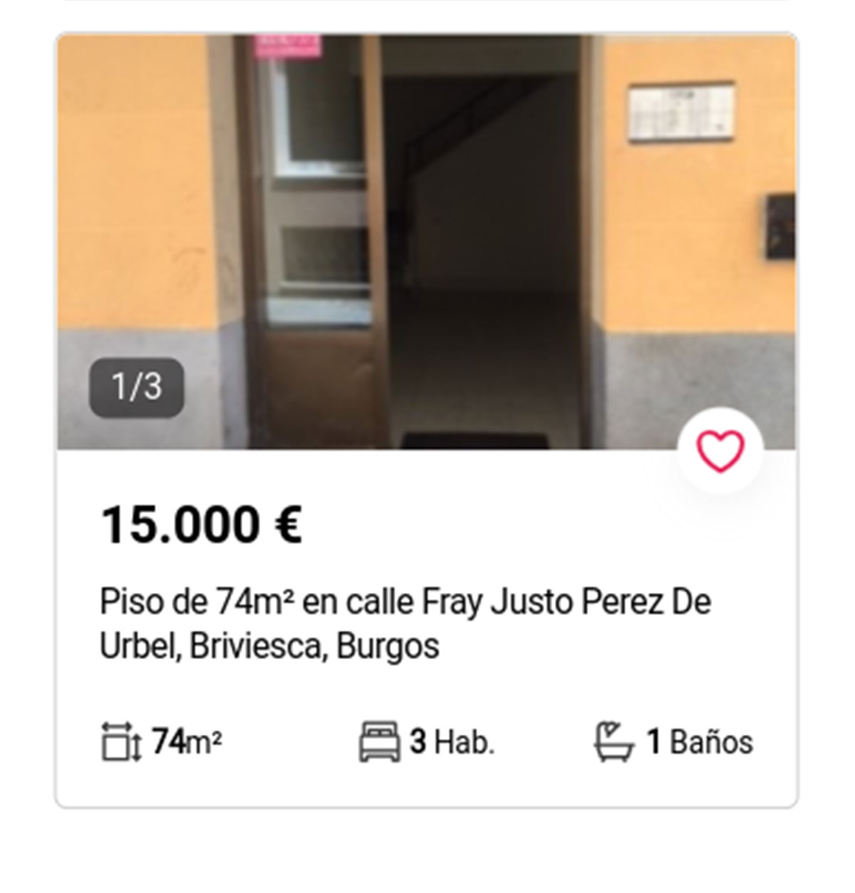 Todos los inmuebles tienen un total de tres o más habitaciones y están distribuidos por diferentes puntos de España. Los más baratos tienen precios desde los 10.000 euros y, en el otro extremo, en esta selección se incluyen aquellos pisos de máximo 100.000 euros de precio.