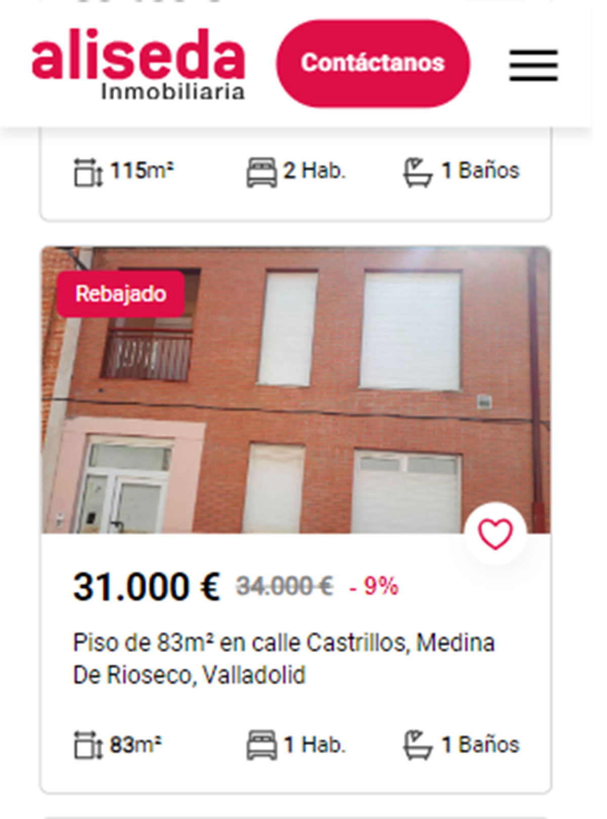 Por 31.000 euros destaca un piso en Medina de Rioseco, Valladolid. Es una vivienda de una habitación y un baño en 83 metros cuadrados.