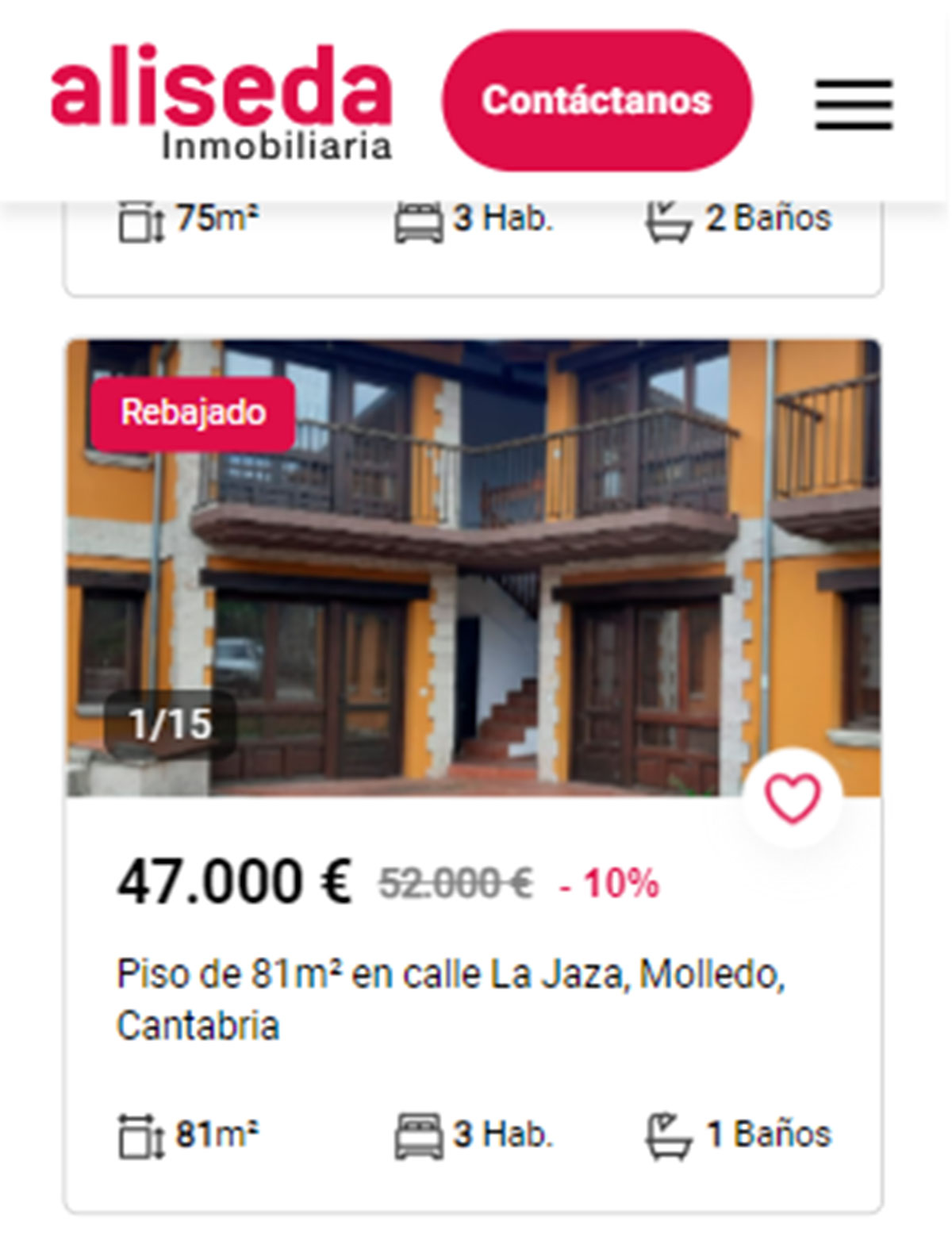 Piso por 47.000 euros en Molledo, Cantabria. Es una vivienda que tiene tres habitaciones y un baño en 81 metros cuadrados.