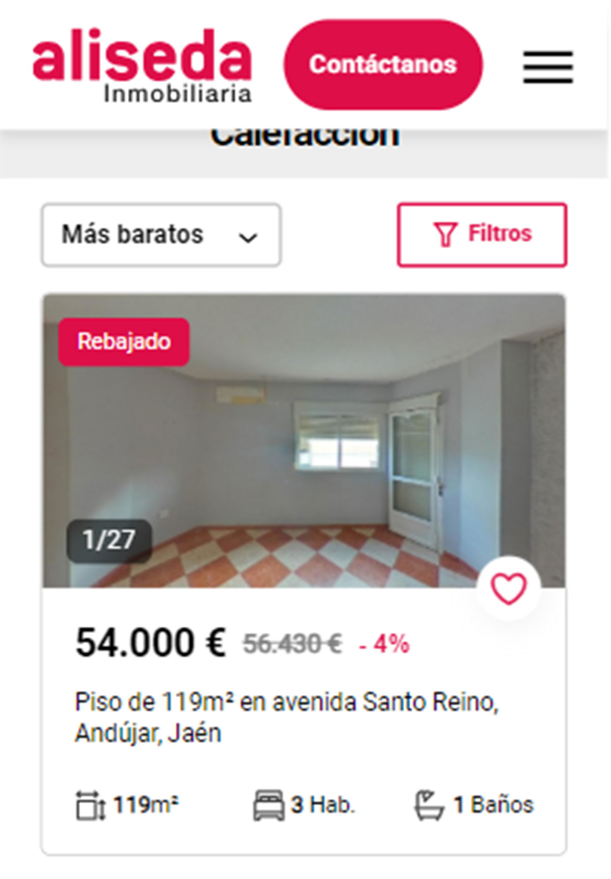 Del total del catálogo de pisos de banco disponibles con calefacción de Aliseda, los más baratos pueden comprarse a partir de 17.500 euros. A continuación puedes consultar algunos de los ejemplos más destacados: