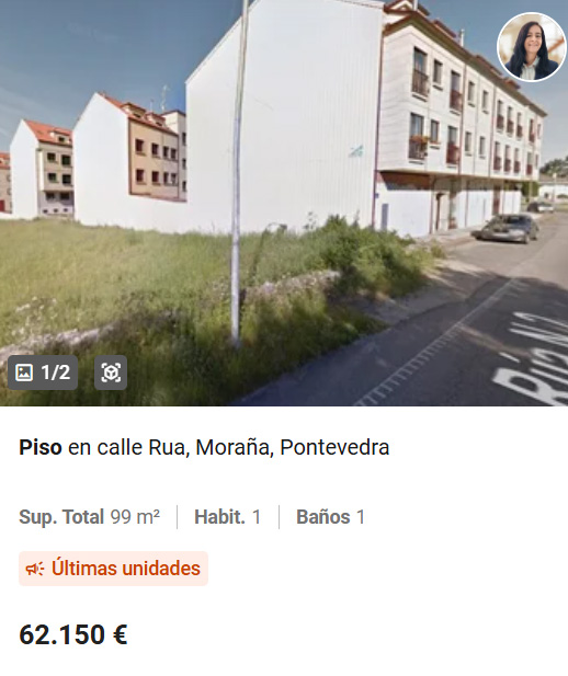 En Moraña (Pontevedra) también se vende otro piso nuevo por el mismo precio de 62.150 euros. La vivienda tiene 99 m² de superficie total construida, con un dormitorio, un baño, salón-comedor y cocina.