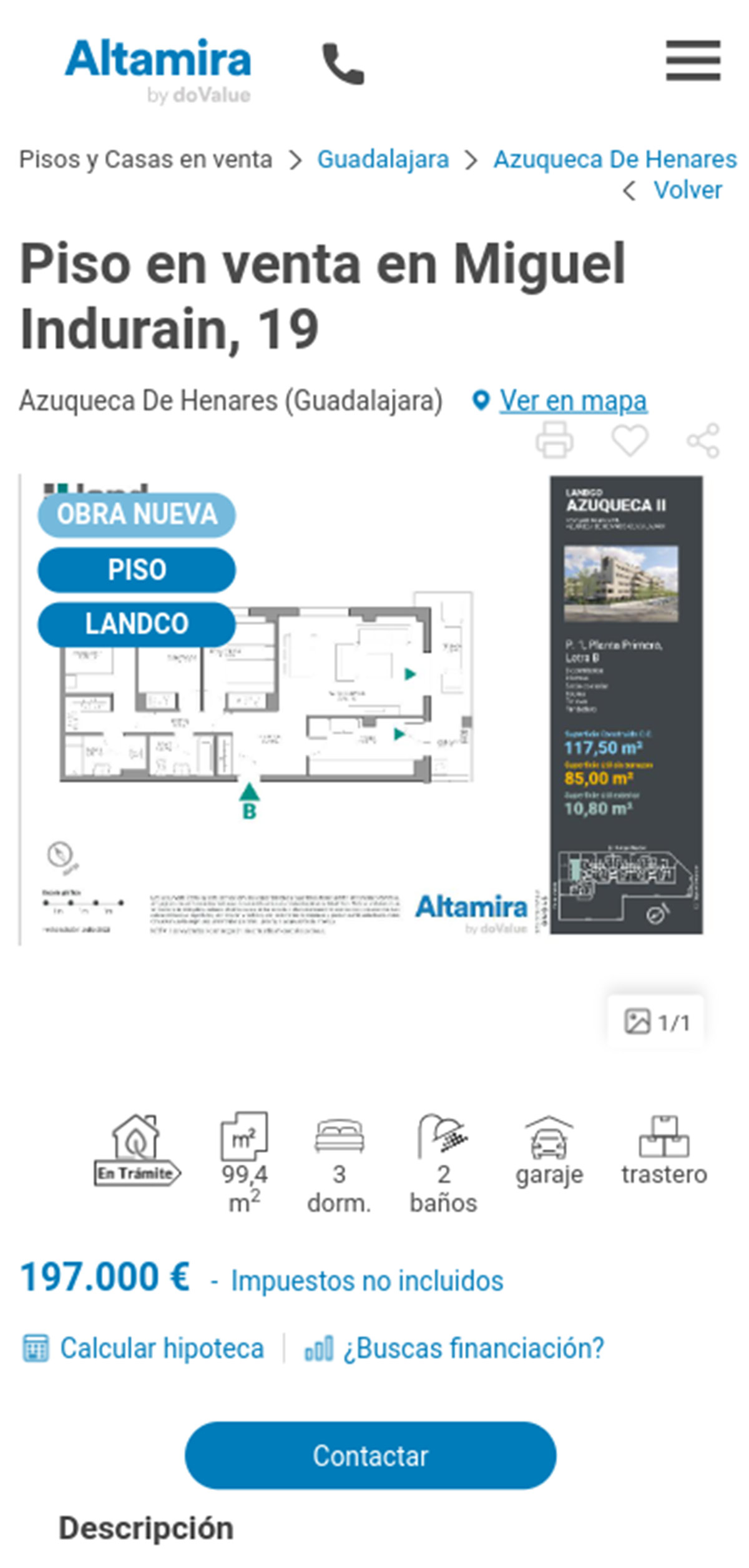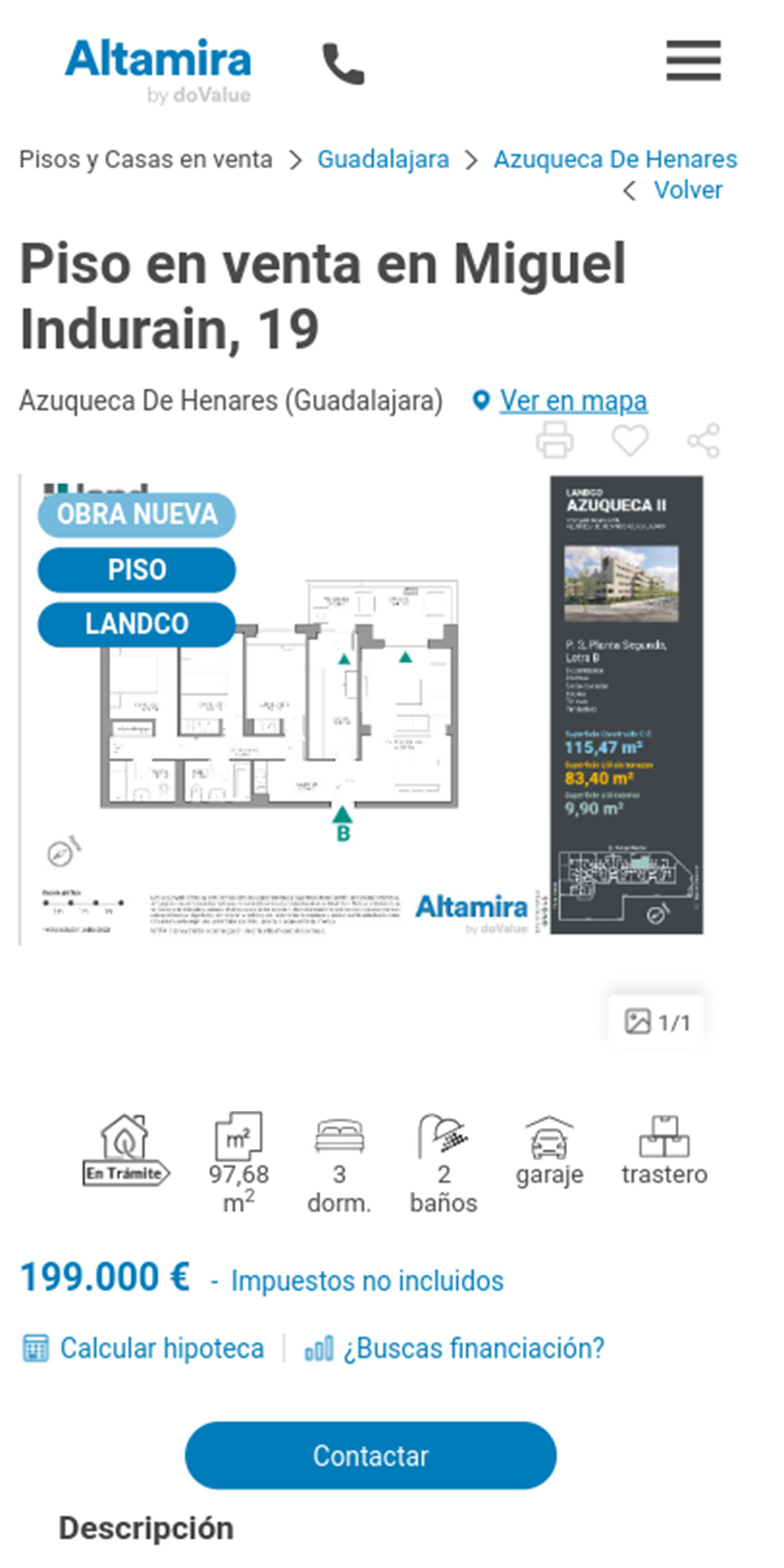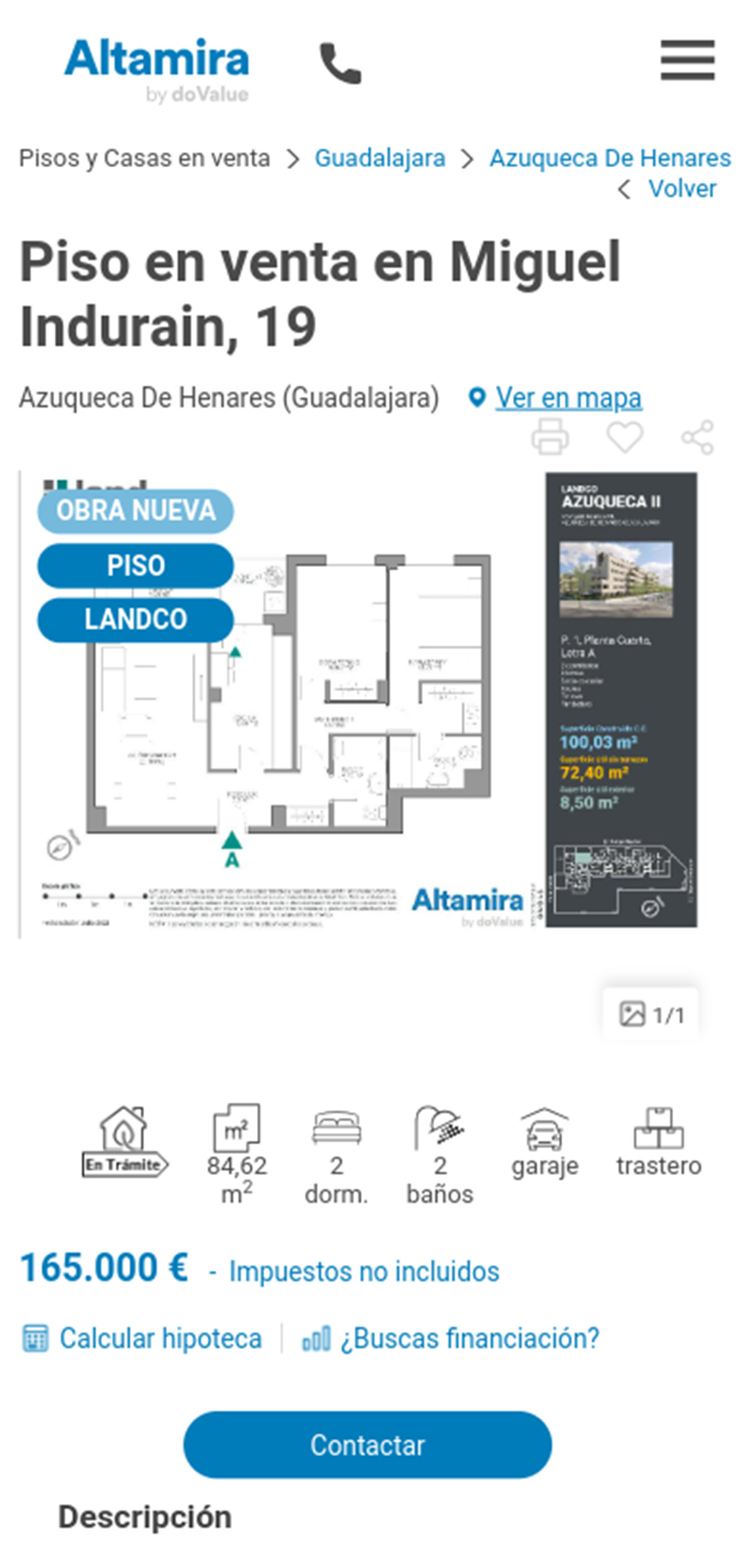 La promoción de pisos de obra nueva que tiene Altamira a la venta pueden comprarse desde 165.000 euros. Se trata de un complejo residencial ubicado en la calle Rafa Nadal de la localidad de Azuqueca de Henares y consta de varias fases.
