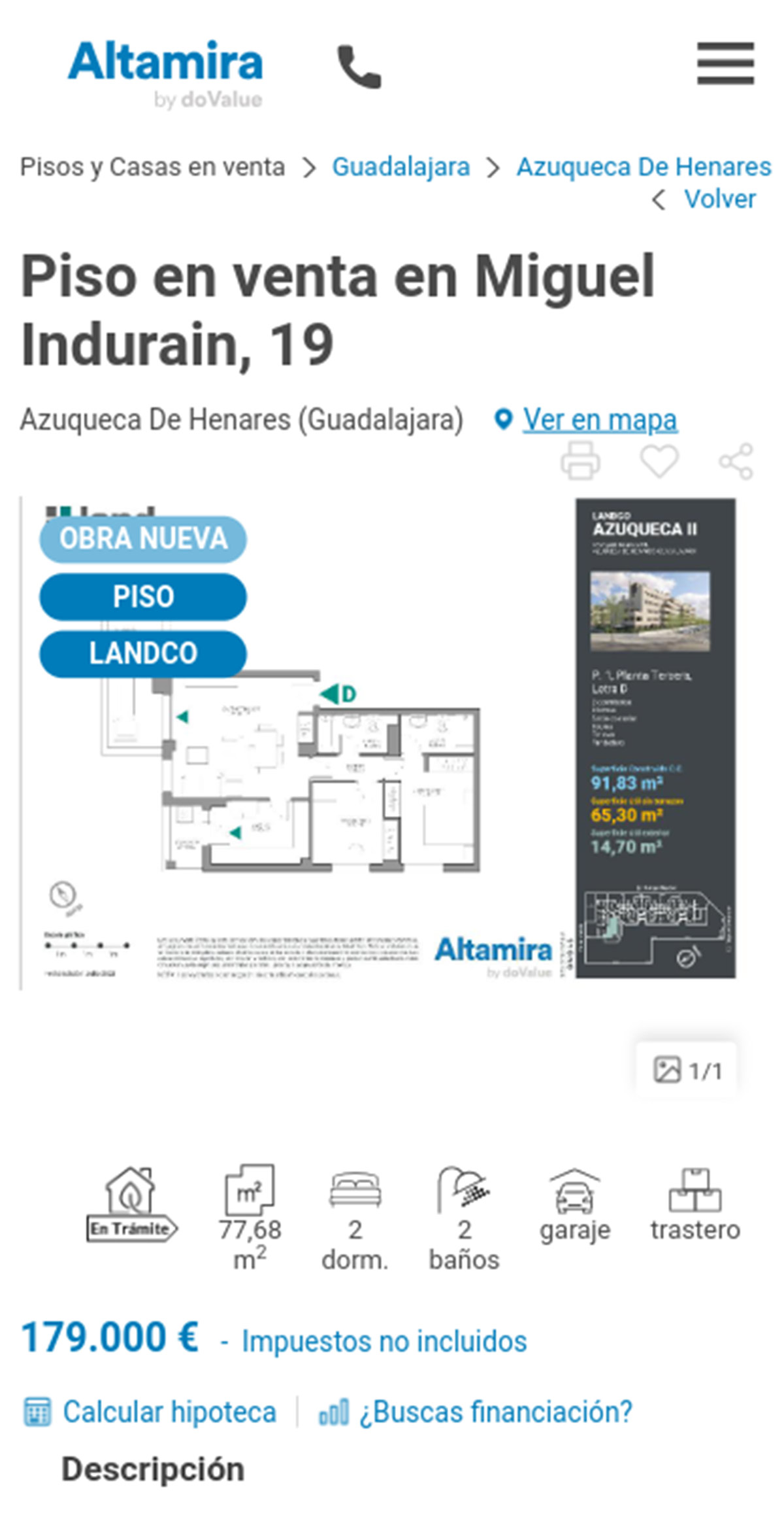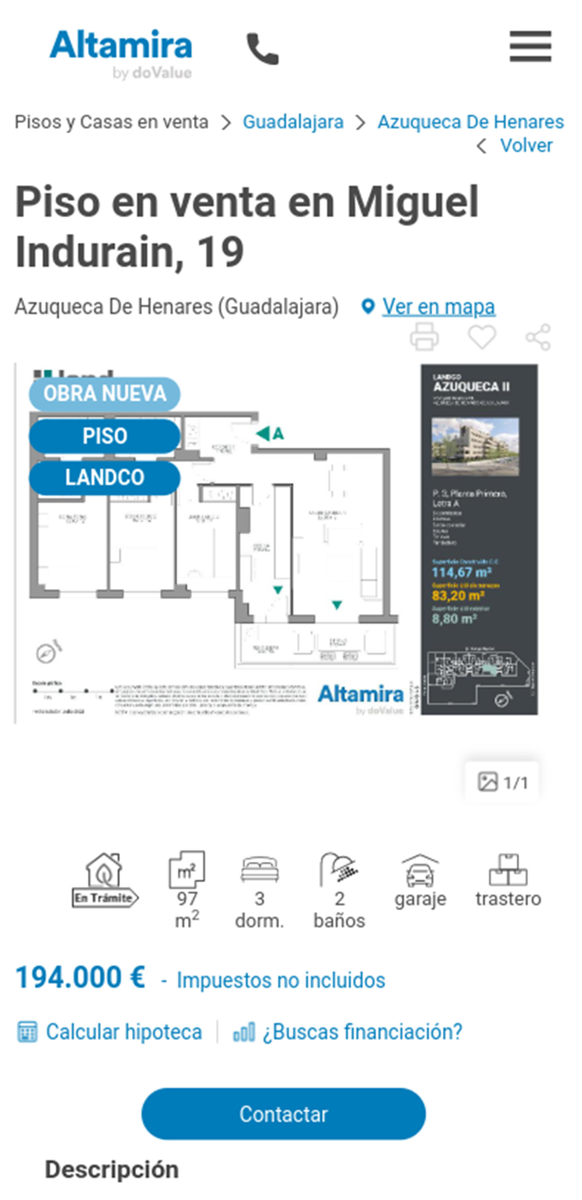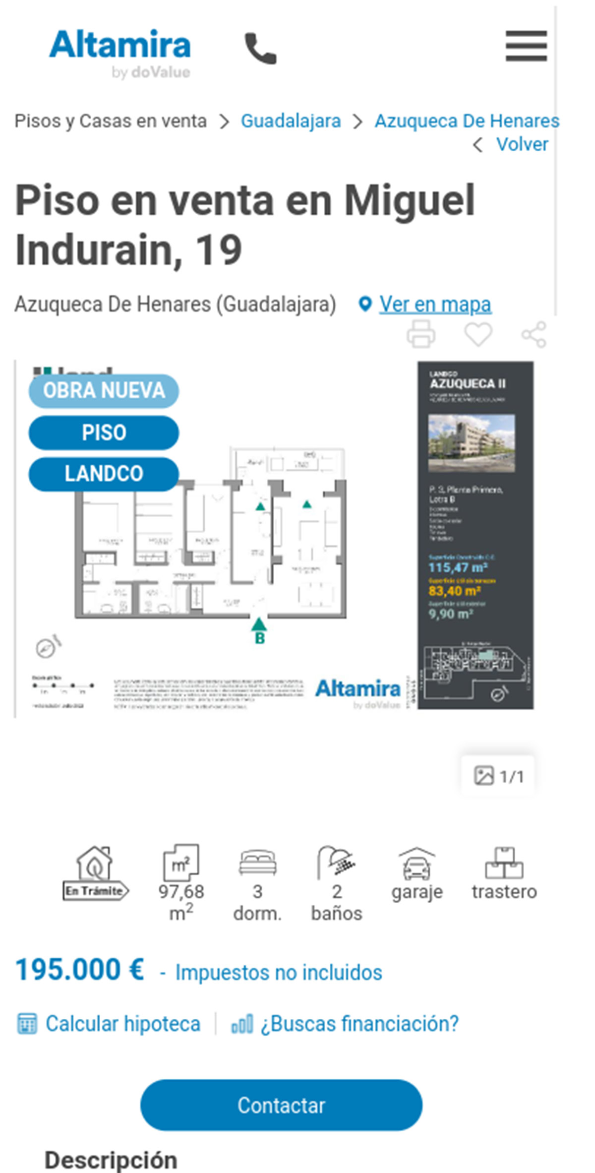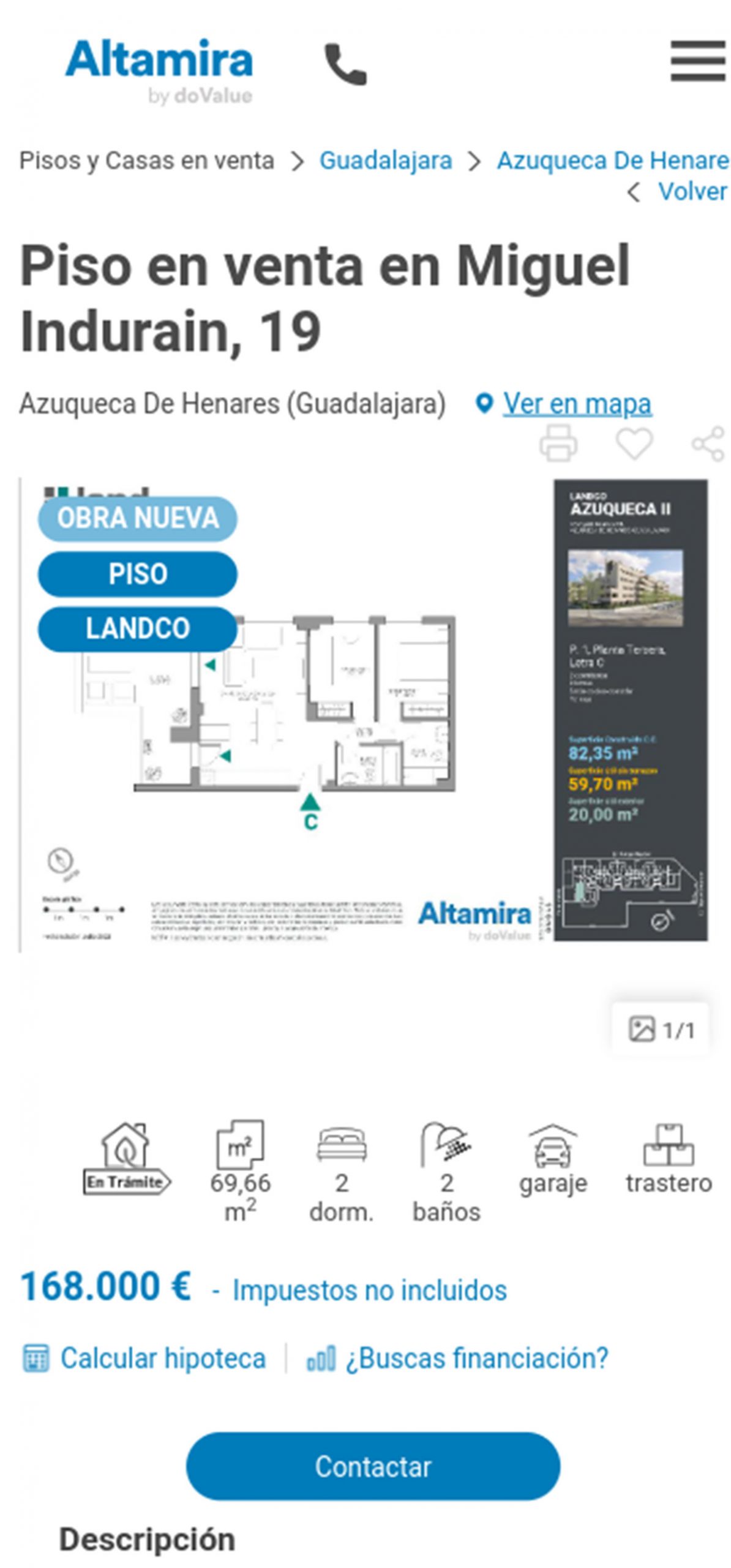 La promoción de pisos de obra nueva que tiene Altamira a la venta pueden comprarse desde 165.000 euros. Se trata de un complejo residencial ubicado en la calle Rafa Nadal de la localidad de Azuqueca de Henares y consta de varias fases.