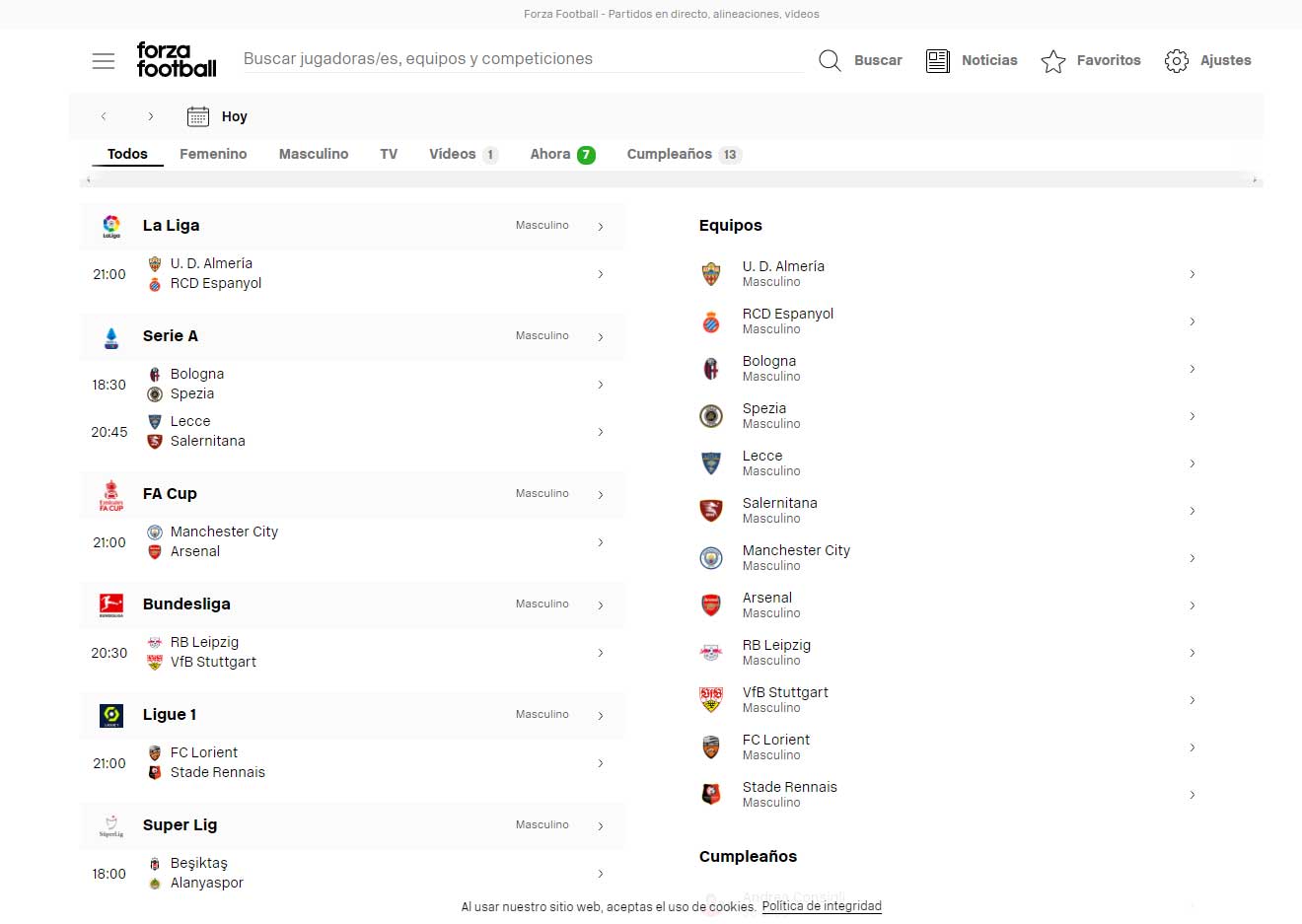En Forza Football no puedes ver la retransmisión de un partido entero, pero sí acceder a las jugadas más importantes durante el partido y conocer los resultados y sucesos más importantes de manera inmediata. La aplicación tiene cobertura para cubrir más de 1.450 ligas y copas, según señala en su descripción y, además, ofrece a los usuarios actualizaciones en directo de las posiciones y clasificatorias. Uno de sus grandes atractivos es la posibilidad de ver los mejores momentos de las jornadas en vídeo.