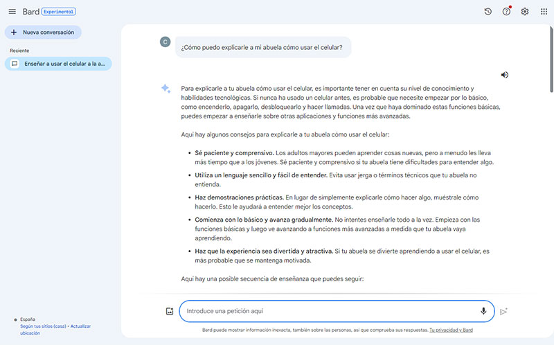 Cómo iniciar una conversación con Bard