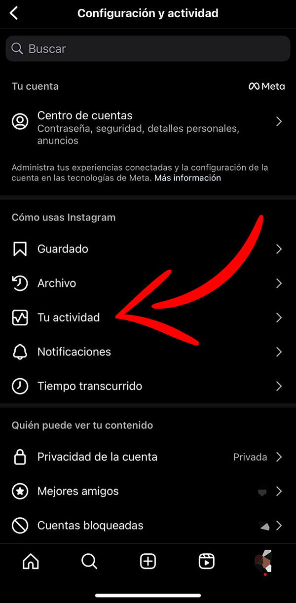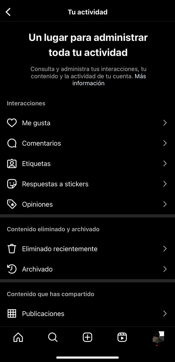 - A continuación, selecciona la opción ‘Tu actividad’.