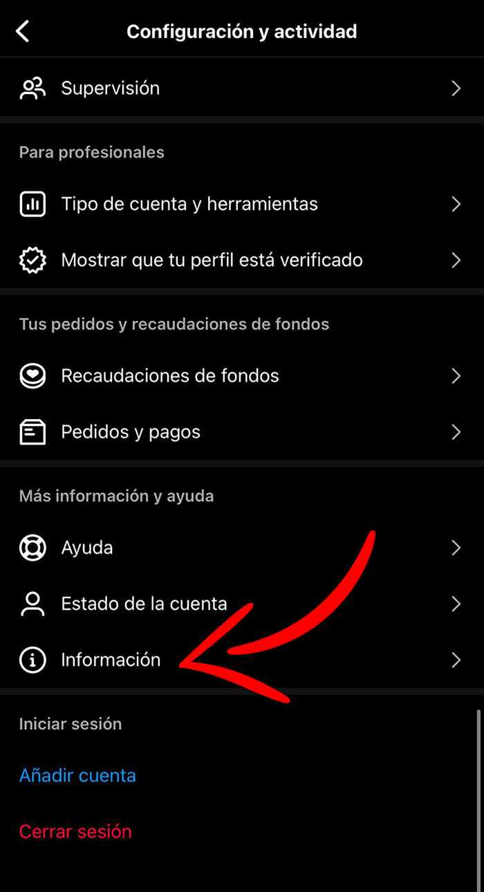 - Dentro, baja hasta el final, donde se encuentra el apartado ‘Información’.
