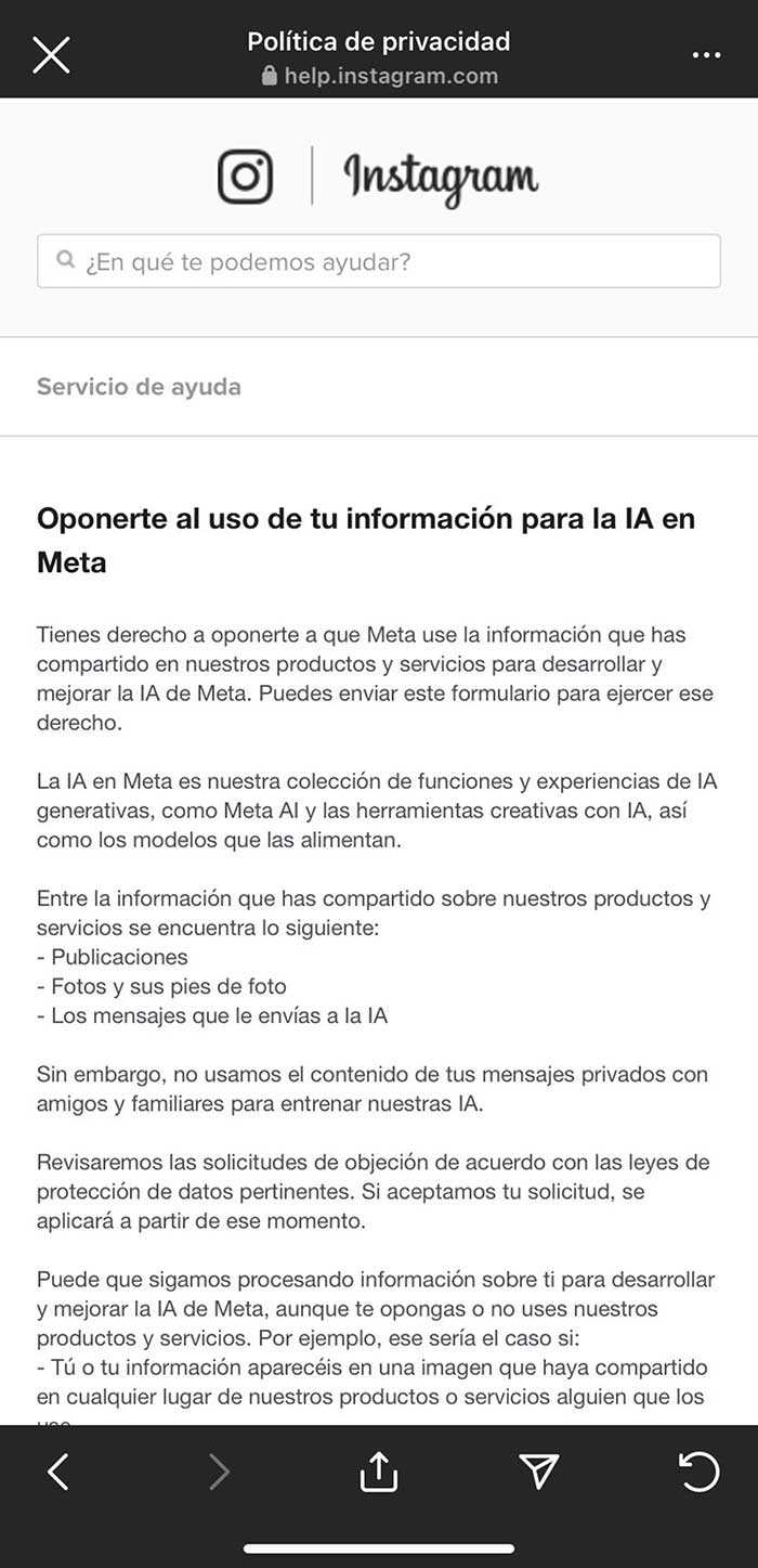En esta información te explicamos cómo puedes prohibir que Meta use tu información para entrenar su IA, bien desde los ajustes de Instagram o rellenando un formulario. De igual forma, en esta otra información te contamos cómo puedes contactar con Instagram en el caso de que tengas algún problema con tu cuenta.