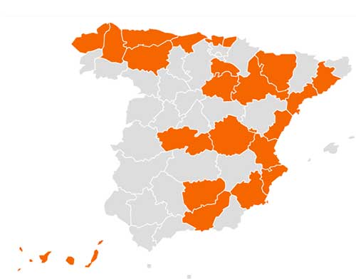 En el momento de realización de este artículo, el portal inmobiliario cuenta con una selección de inmuebles distribuidos por diferentes provincias en España. En concreto, se trata de viviendas ubicadas principalmente en el litoral mediterráneo, en zonas del norte peninsular, centro y algunos puntos del sur, tal y como puede apreciarse en el siguiente mapa: