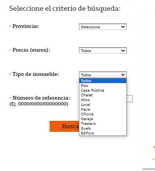 Para buscar los inmuebles que puedan resultarte de interés, lo primero que hay que hacer es acceder a la página principal del portal inmobiliario de Bankinter. Una vez aquí, buscar la sección que dice ‘Seleccione el criterio de búsqueda‘.