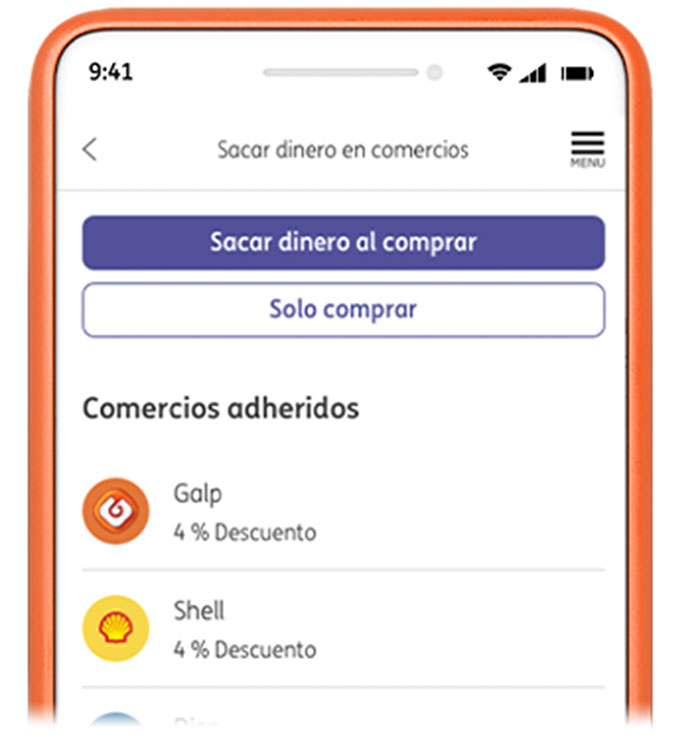 En el caso de usar esta función en las gasolineras Galp, Shell, DISA y las mencionadas del Grupo Atenoil, también recibirás un 4 % de cashback al hacer tu repostaje. Es decir, se te devolverá dicho porcentaje del importe de la compra en los pagos realizados en los establecimientos adheridos a la oferta. El abono de la devolución se realizará el siguiente día hábil al pago, que será abonado en su cuenta de ING asociada a ‘Sacar dinero en comercios’.
