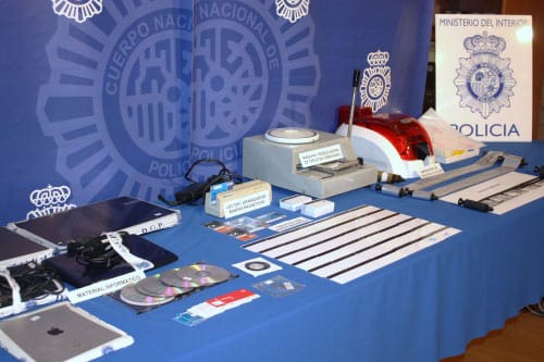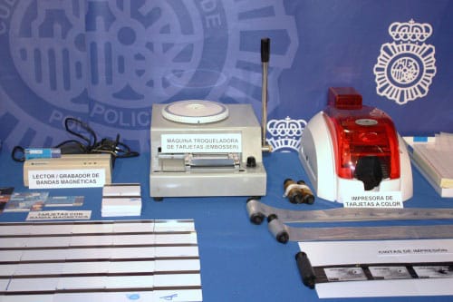 Uno de los grupos desarticulados estaba liderado por un hombre, de nacionalidad ecuatoriana, apodado “El Español”, bajo cuyas directrices actuaban el resto de miembros. Tenía contactos con organizaciones de Rumanía y Francia que les remitían a través de Internet o SMS numeraciones copiadas de tarjetas emitidas en el extranjero. Estos datos eran obtenidos con técnicas de skimming –mediante la manipulación de cajeros o de datáfonos TPVs (dispositivos de pago en los comercios).